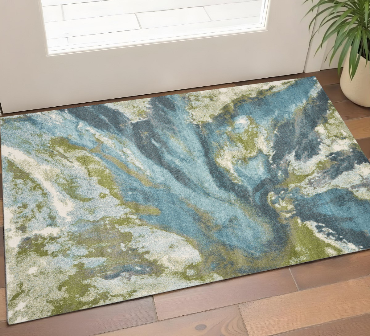 This 3-foot x 5-foot teal gray and green abstract area rug, is a great way to add warmth to a room. Built to last, this rug crafted from polypropylene fibers is known for its durability and long lasting appeal. Rugs are a great way to showcase your style, hide imperfections, warm your home and reduce noise. This smaller sized, contemporary styled rug is just what you need for your walkway, bedside, in front of door, cabinet, refrigerator, or chair. 39.00-inch h x 59.00-inch w x 0.50-inch d.