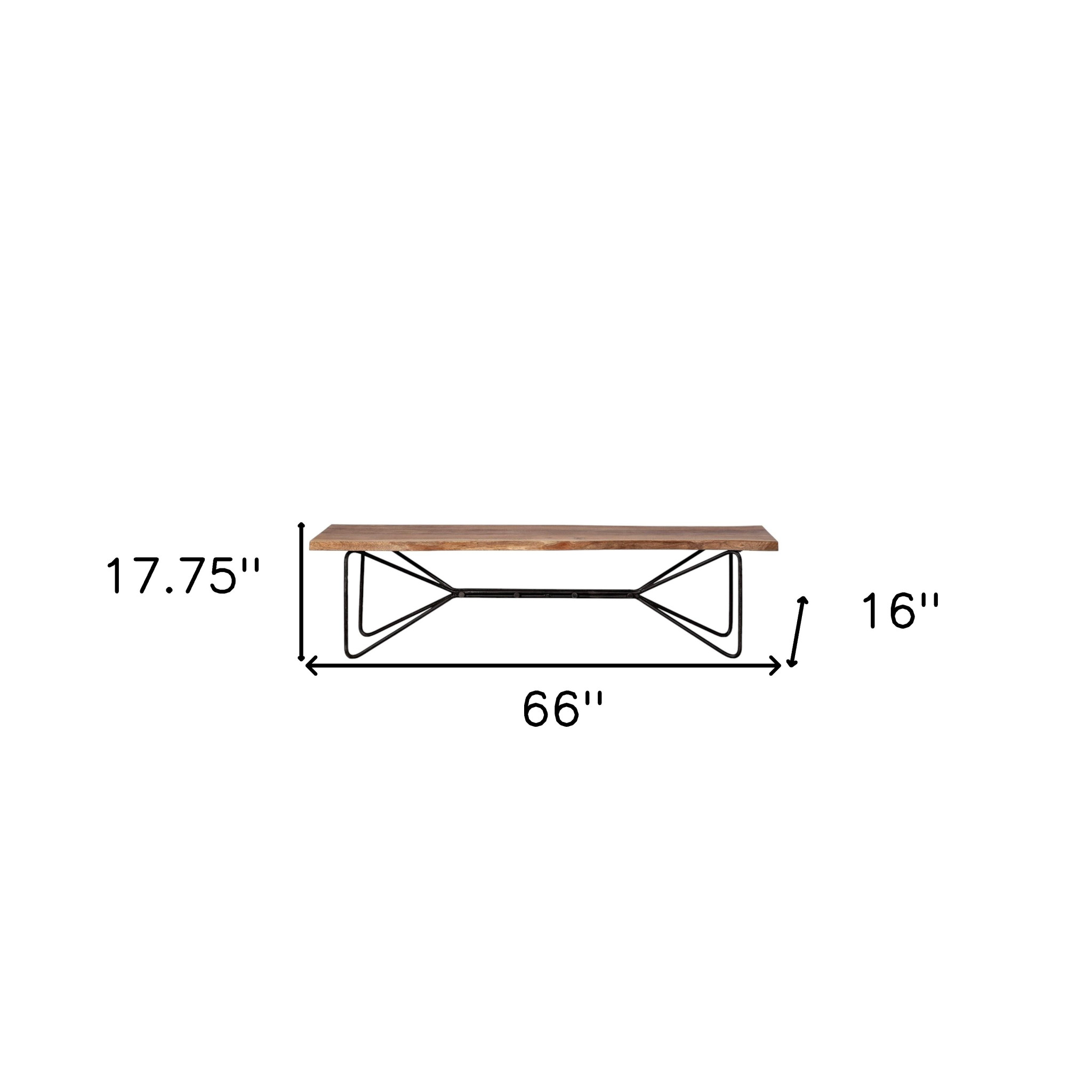 Practicality and fashion mix together with this handy 66-inch brown and black distressed live edge solid wood dining bench. Sporting a unique organically styled live edge, this genuine wood bench will add an artisanal vibe to what ever space you put it in. The purposefully distressed finish gives this versatile bench an authentically rustic feel. Add this bench to your kitchen or dining room for convenient seating at the table. Easy to blend into most any room, a bench is a way to add a good looking accent to your space that can also be practical and useful. 17.75-inch h x 66-inch w x 16-inch d.