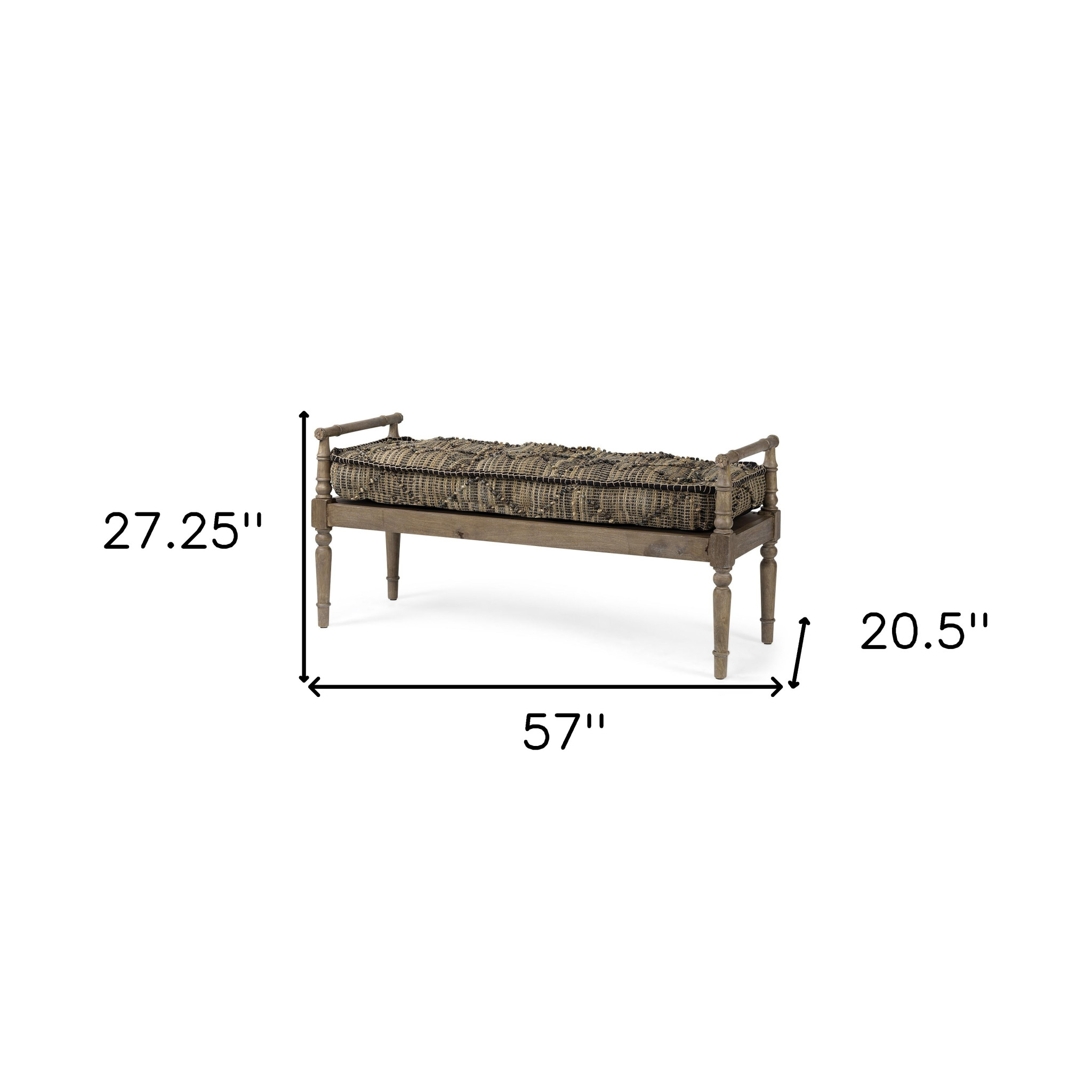 rectangular indian mango woodlight brown, grey jute patterned accent bench, mango woodlight brown grey jute, indian mango woodlight brown grey, rectangular indian mango woodlight |