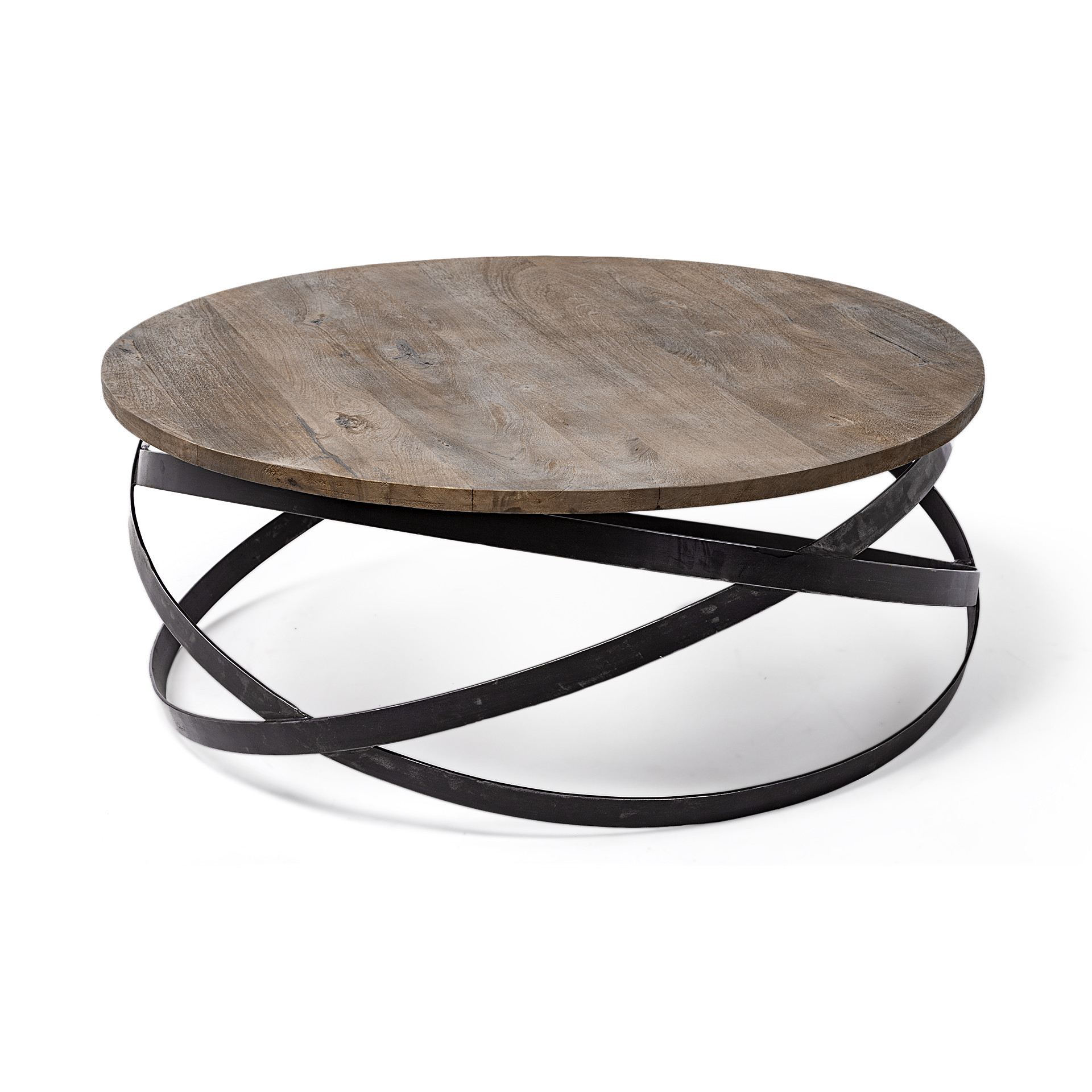 wood metal round coffee table, metal round coffee table, 41" brown black solid wood, solid wood metal round coffee, round coffee table |