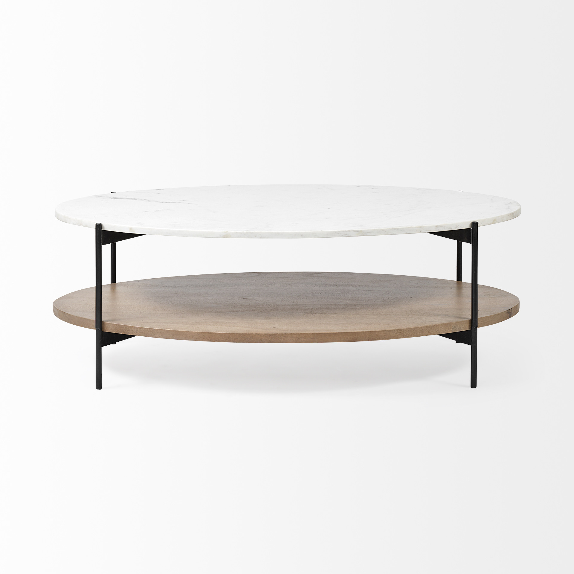 Add handsome, fashionable design to your living space with this 48-inch brown and black genuine marble and metal oval coffee table with shelf. The brown genuine marble top of this table is a nice visual contrast to the high quality, black metal of the base. Includes a single shelf for handy storage or display space. This oval table is an updated take on a classic. If you're looking for something that can fit into a living area, bedroom, or office, this coffee table is for you. 16-inch h x 48-inch w x 30-inch d.