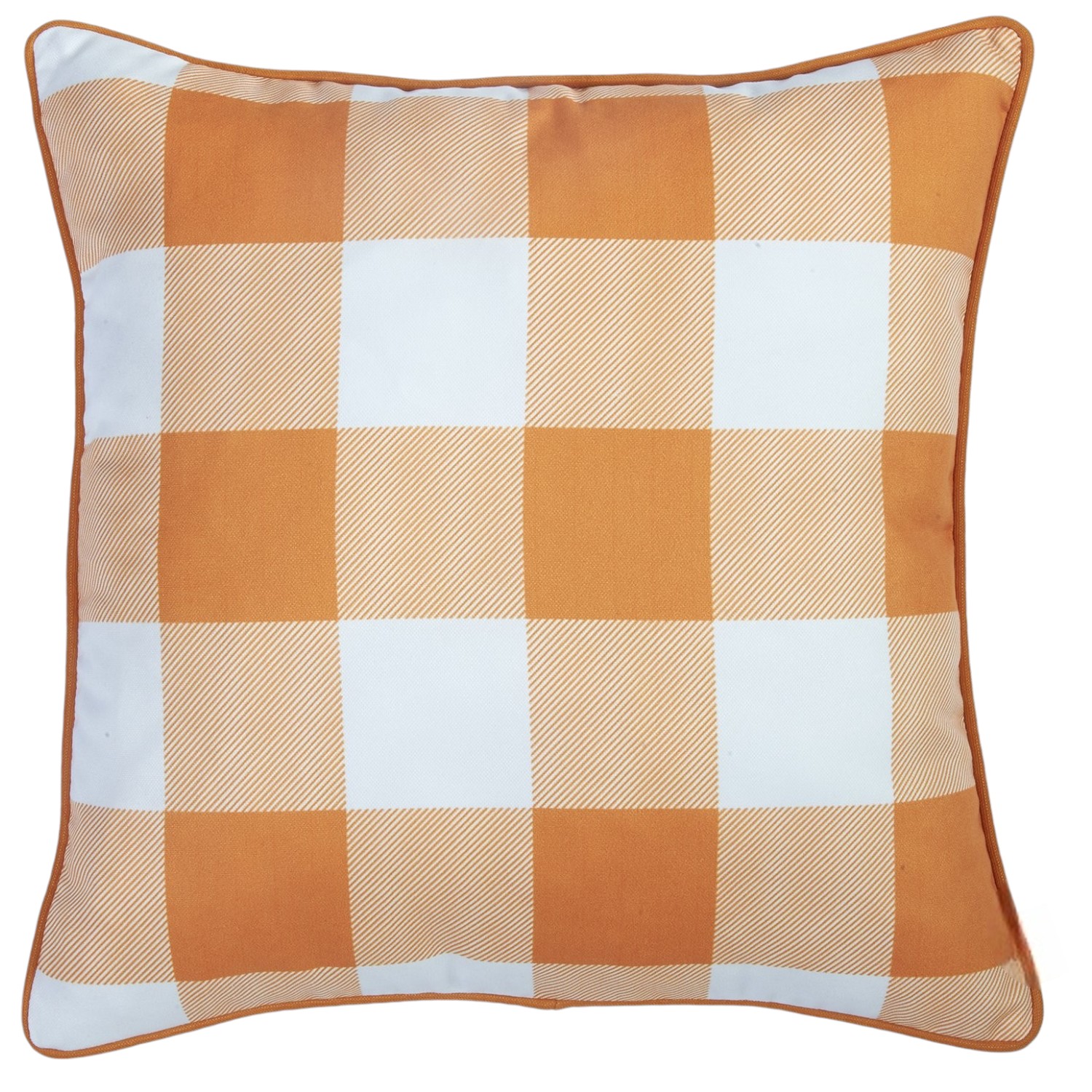 Add an air of fashion to your room and rejuvenate the space with this cute and fashionable set of four 18-inch orange and white fabric throw pillow covers. The orange and white coloring of the extremely durable and long lasting polyester pillow covers will add dimension and texture to your space. For anyone that loves to decorate or accent their space with color and texture. A great decorative accessory to add color and dimension to your favorite chair, accent your sofa, or to use as part of your bed ensemble. 18-inch h x 18-inch w x 1-inch d.