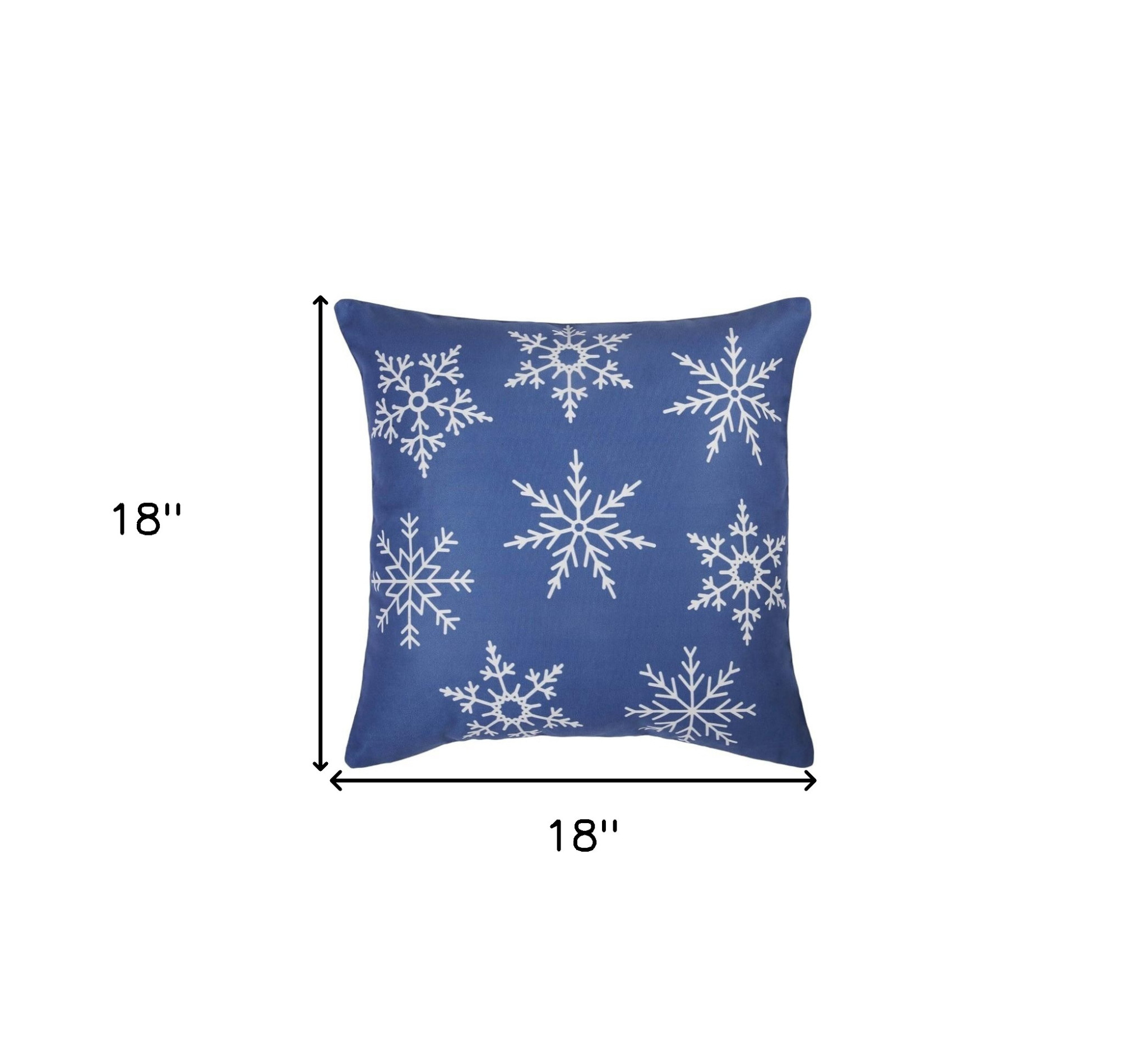 Bring some Blue and White Holiday Cheer to your space with this Set of Holiday Snowflakes Throw Pillow Covers. Ready to be stuffed, these covers are made from high quality brushed polyester which is soft to the touch. These covers feature tasteful snowflakes on the front and solid blue on the back. Wonderful to celebrate the holiday and winter season. 18" x 18". Set of two.