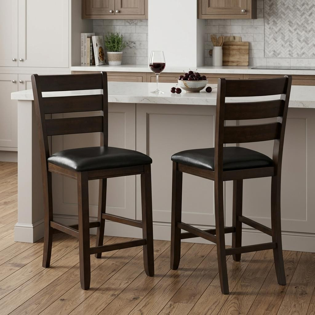 wood counter height bar chairs, counter height bar chairs, faux leather solid wood counter, leather solid wood counter height, 41" black brown faux leather |