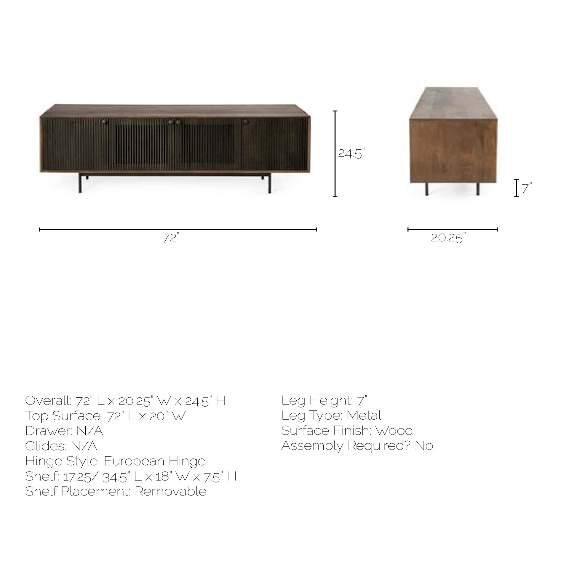 Make a true home theater of your room with this captivating 20-inch brown solid wood cabinet enclosed storage tv stand. Ideal for tv placement and storage in your living room, bedroom, or office. Crafted with legs for stability, this tv stand exudes charm with its solid wood material and warm brown color palette, seamlessly blending with your existing decor. Enrich your entertainment area with this stylish piece that combines functionality and elegance, creating a focal point in any space. 24-inch H x 20-inch W x 72-inch D