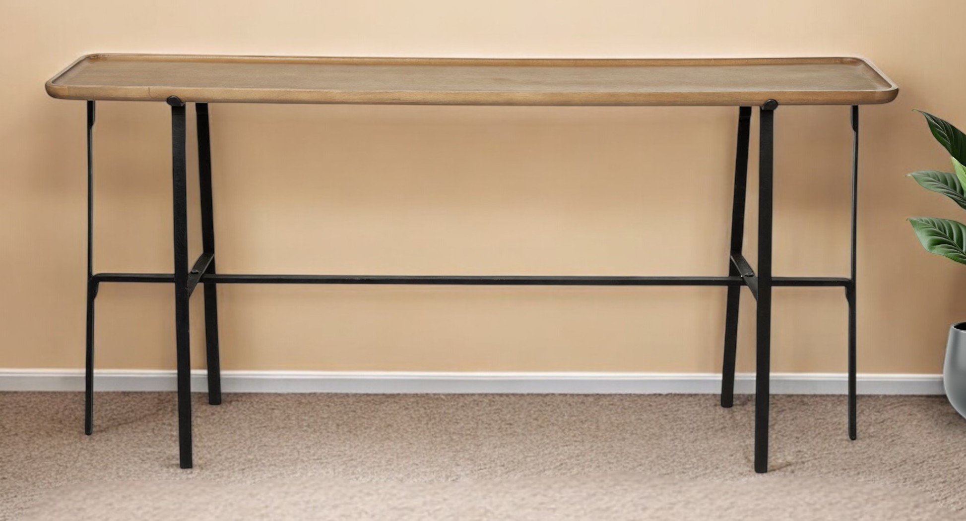 Make a statement in your entryway with our stunning 14-inch brown and black solid wood trestle console table. This versatile table is a classic rectangular shape, which will easily fit into most any space in your home. If you are searching for the highest quality brown wood furniture, hardwood can not be beaten as an unmatchable combination of beauty, craftsmanship, and durability. Versatile in use, console tables can be used for a variety of purposes in a variety of rooms and settings. 28.5-inch H x 14-inch W x 60-inch D