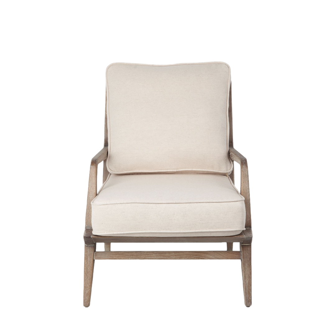 This 24-inch ivory and brown fabric arm chair is the perfect decorative yet functional accessory for your home. This sturdy fabric upholstered arm chair comes in a chic solid ivory color to give your space just the right look. Giving the chair stability and structure, the inner frame is constructed with high quality solid wood, includes comfy armrests, and features a tight back that comes complete with soft and comfortable cushioning. 32.28-inch h x 24.01-inch w x 31.88-inch d.