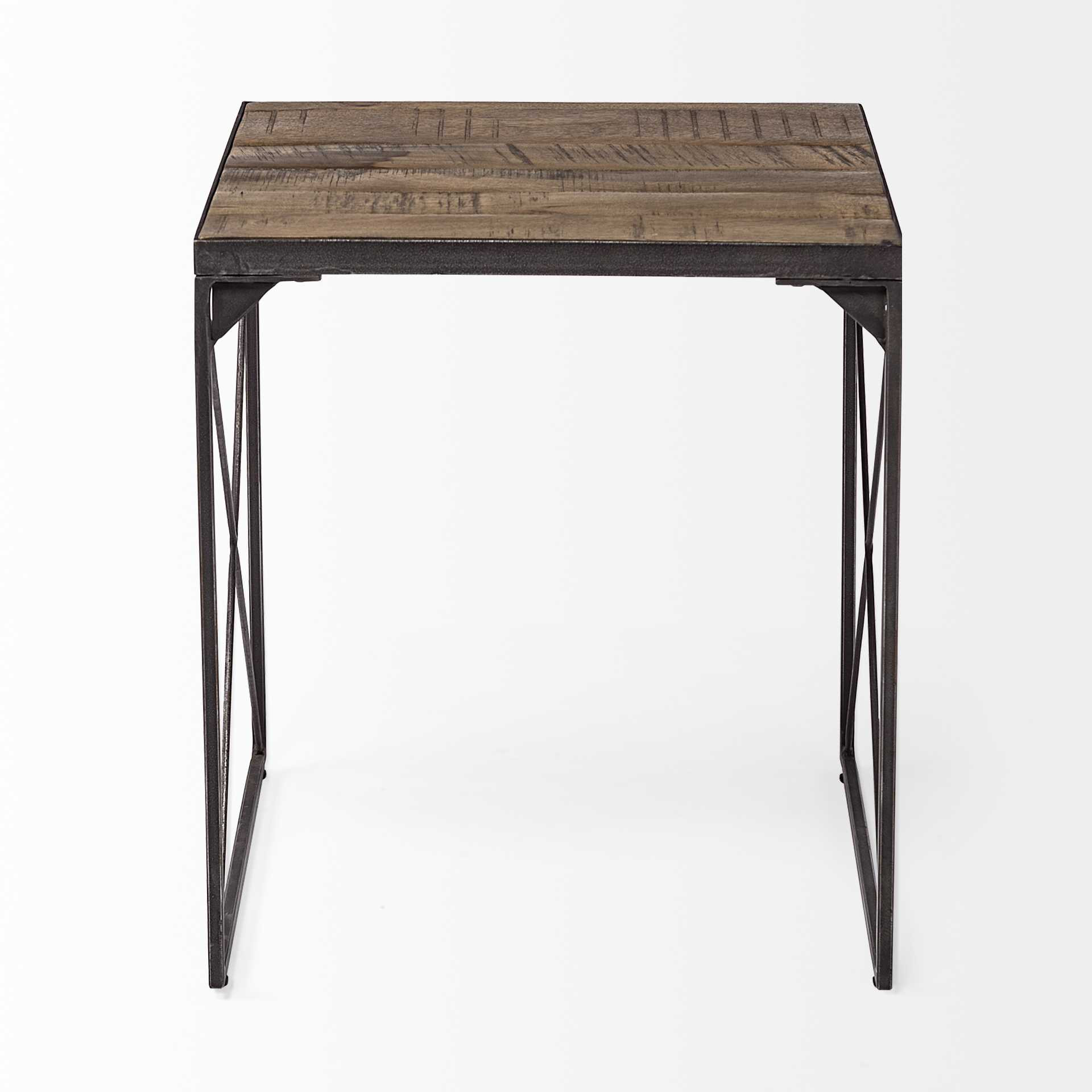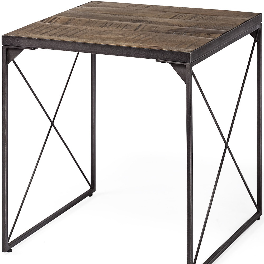Optimize your space and add some charm to your room with the 23-inch brown solid wood square end table. A sleek brown monotone color gives this iron and solid wood table a fresh and updated look. A great accent on either side of the sofa or bed, this adorable end or side table is just what you need. This versatile table is a great accent for most any room. 22.5-inch H x 24-inch W x 24-inch D