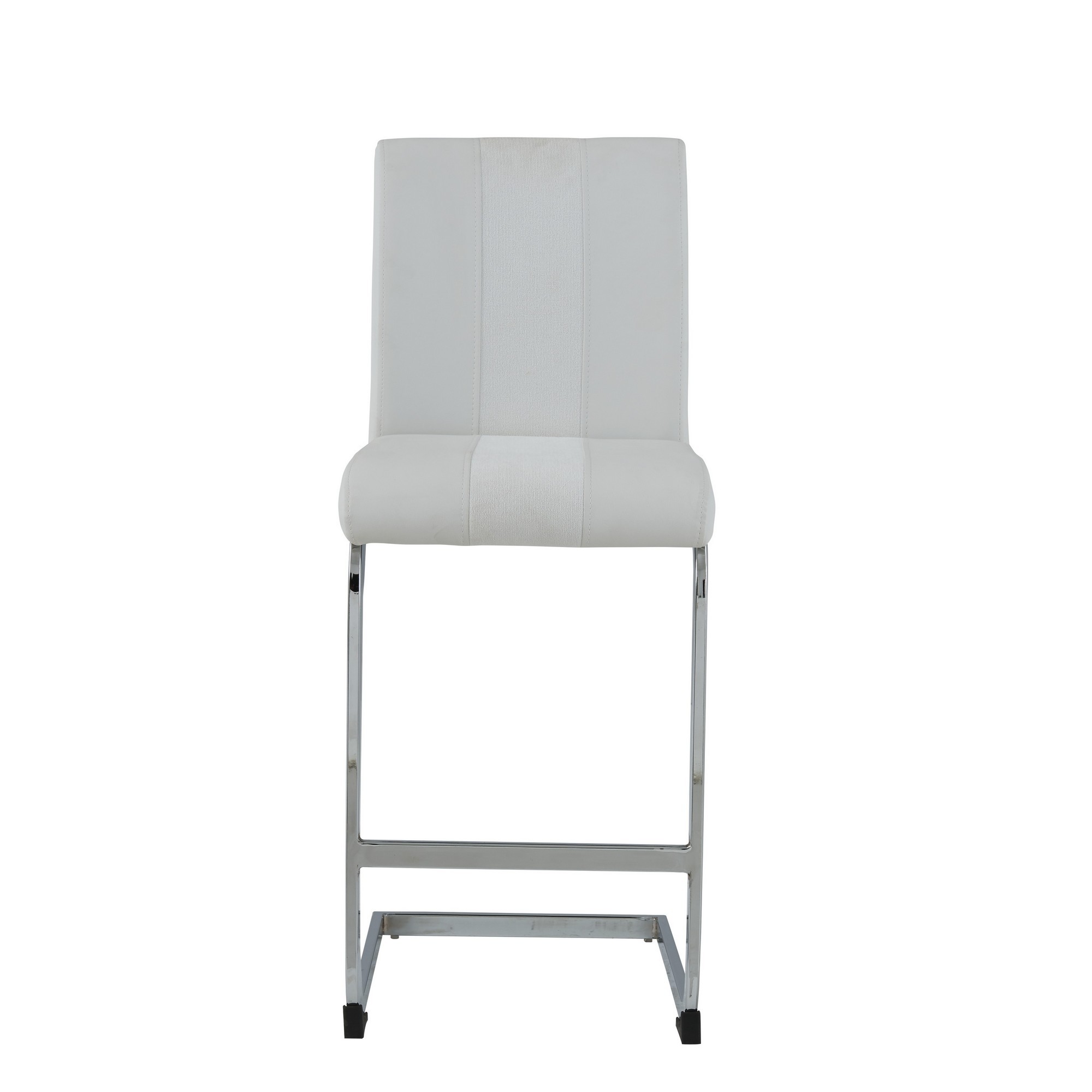 Comfort and design come together nicely in this set of four 26 " white and silver metal low back counter height bar chairs. Quality construction from silver metal combines with white solid and manufactured wood to give this stool a fresh and updated look. The square shape of the seat combines with a low back to give this chair a comfortable and fashionable look. Designed with a footrest for comfort and convenience. 40-inch H x 20-inch W x 16-inch D