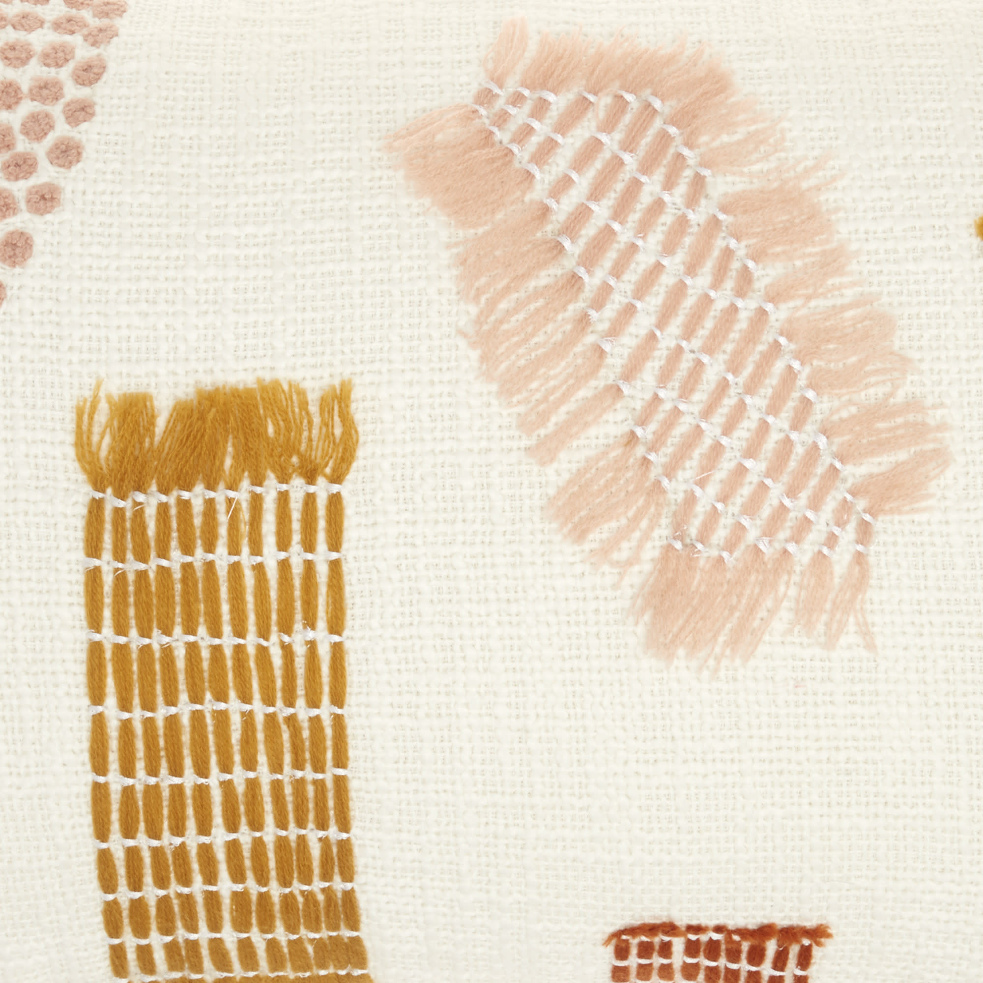 This 12-inch x 20-inch beige blue and ivory geometric cotton throw pillow with textured appliques will add a beautiful decorative accent to your decor. The pillow has a rectangular shape and is covered in a woven cream colored cotton. Atop this cream background, there are multi-colored colored stitch detail embellishments that add depth and texture to the overall look. Filled with soft polyester, this pillow not only is decorative but made to be comfy and cozy all day long. 12-inch H x 20-inch W x 5-inch D