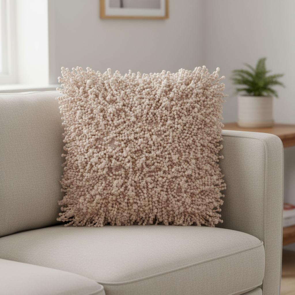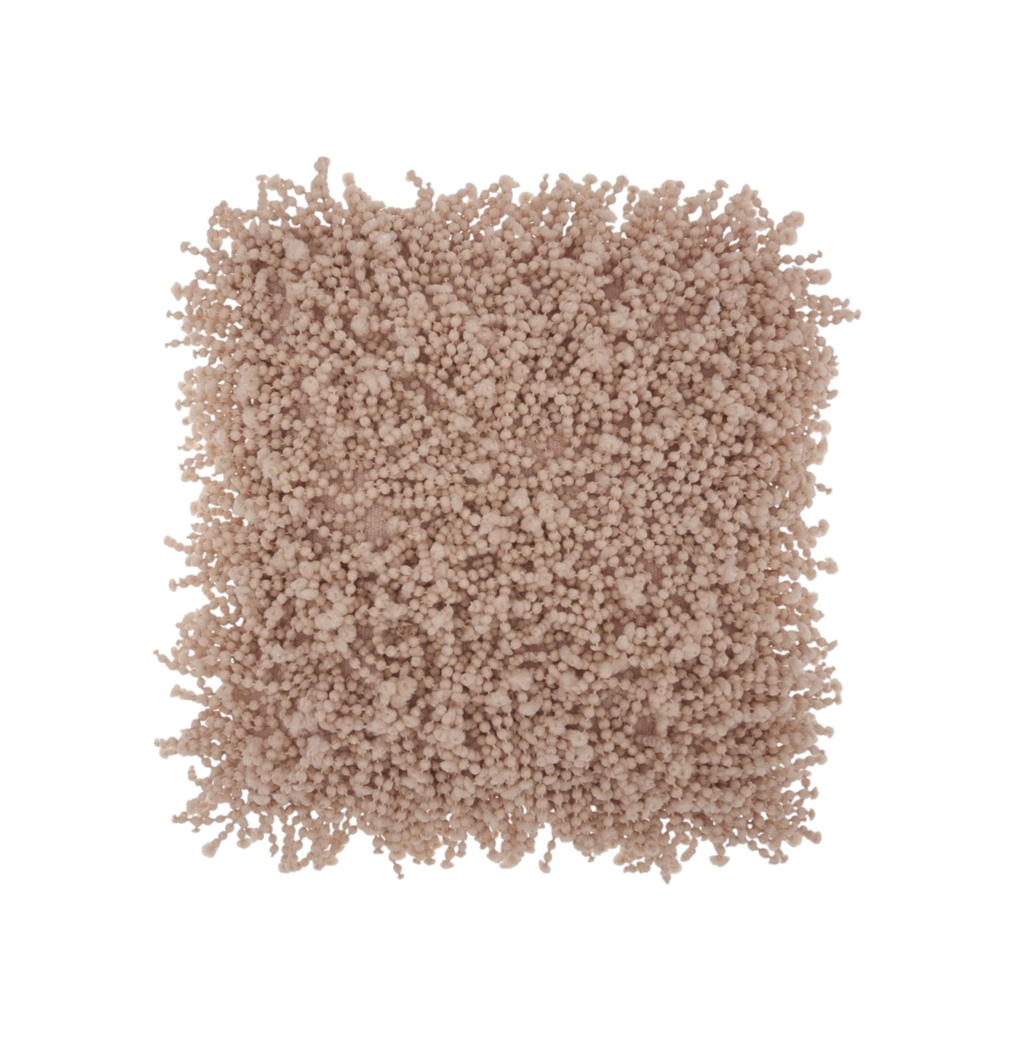 Add some awesome texture and great looks to your space with this Pale PInk Shaggy Beads Square Throw Pillow. In just the perfect pale shade of pink, this textural shaggy pillow is full of soft hand-knotted beads in an abstract art fashion that will be as comfortable as it is cute. Add this decorative pillow to your favorite chair, sofa, or bed for a chic, cozy, and modern accent. 6" x 20" x 20".