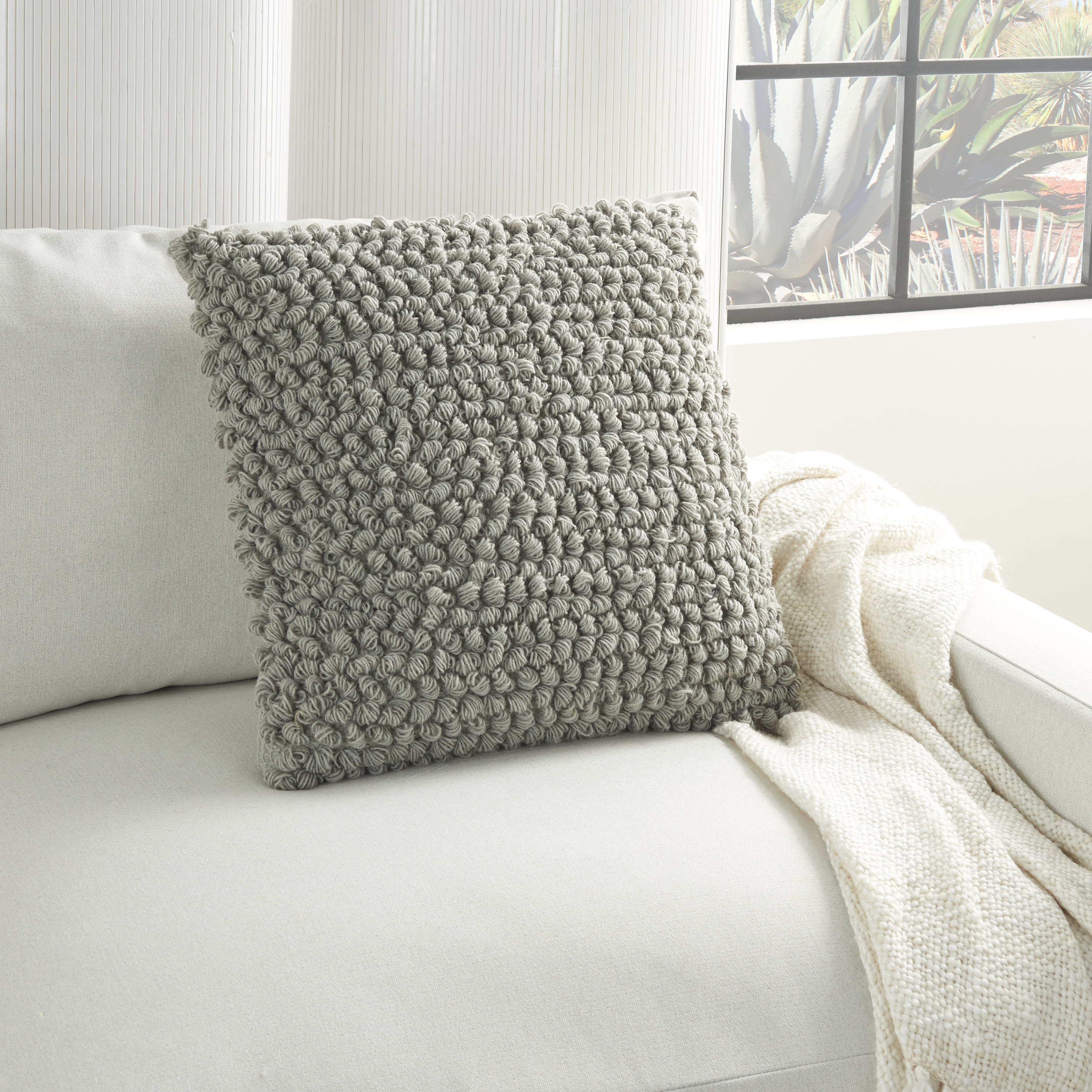 Super soft and cuddly this Curly Loops Light Gray Wool Cotton Blend Throw Pillow is a great way to accent your bed, sofa, or chair. This solid color pillow has hand-spun thin yarn loops on the front to create a comforting and textural feel. The solid color back includes a hidden zipper closure for convenience. Generous in size, this solid color decorative throw pillow is a great way to accent your decor. 20" x 20"