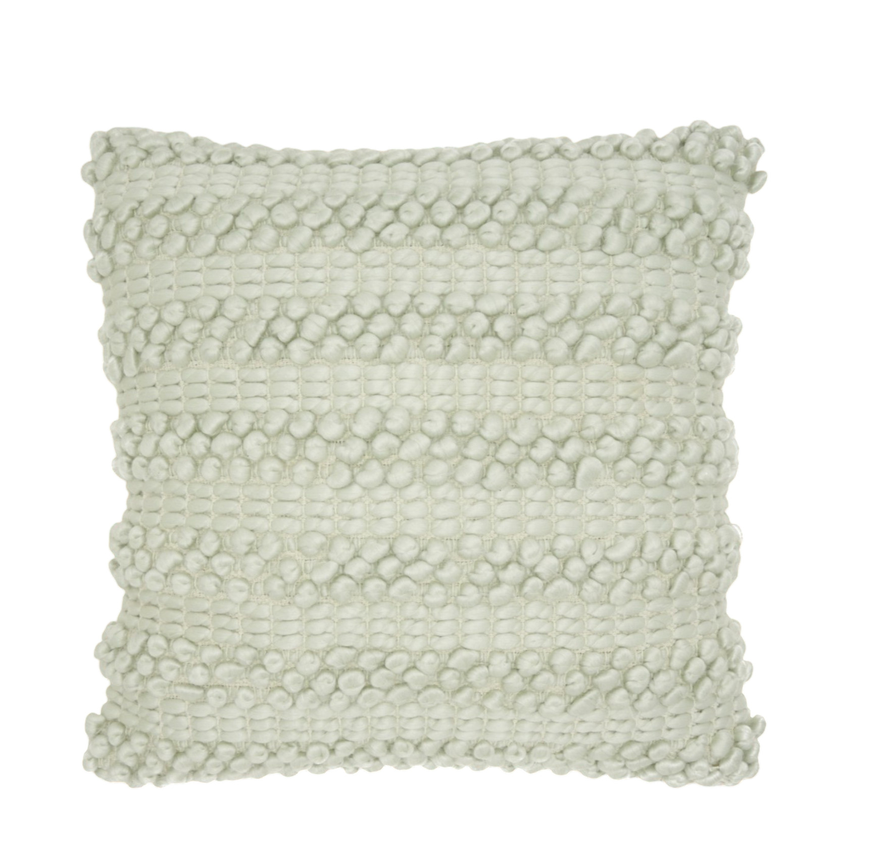 The perfect complement to your sofa, favorite chair, or bed, this 20-inch mint green striped throw pillow with texture is a great decorative accent. Super soft and built to hold its shape, this polyester pillow is a great option. Great to use on its own or mix with other decorations for the perfect look. Decorative pillows are a great way to change up the look and feel of your space easily and quickly. 20-inch H x 20-inch W x 6-inch D