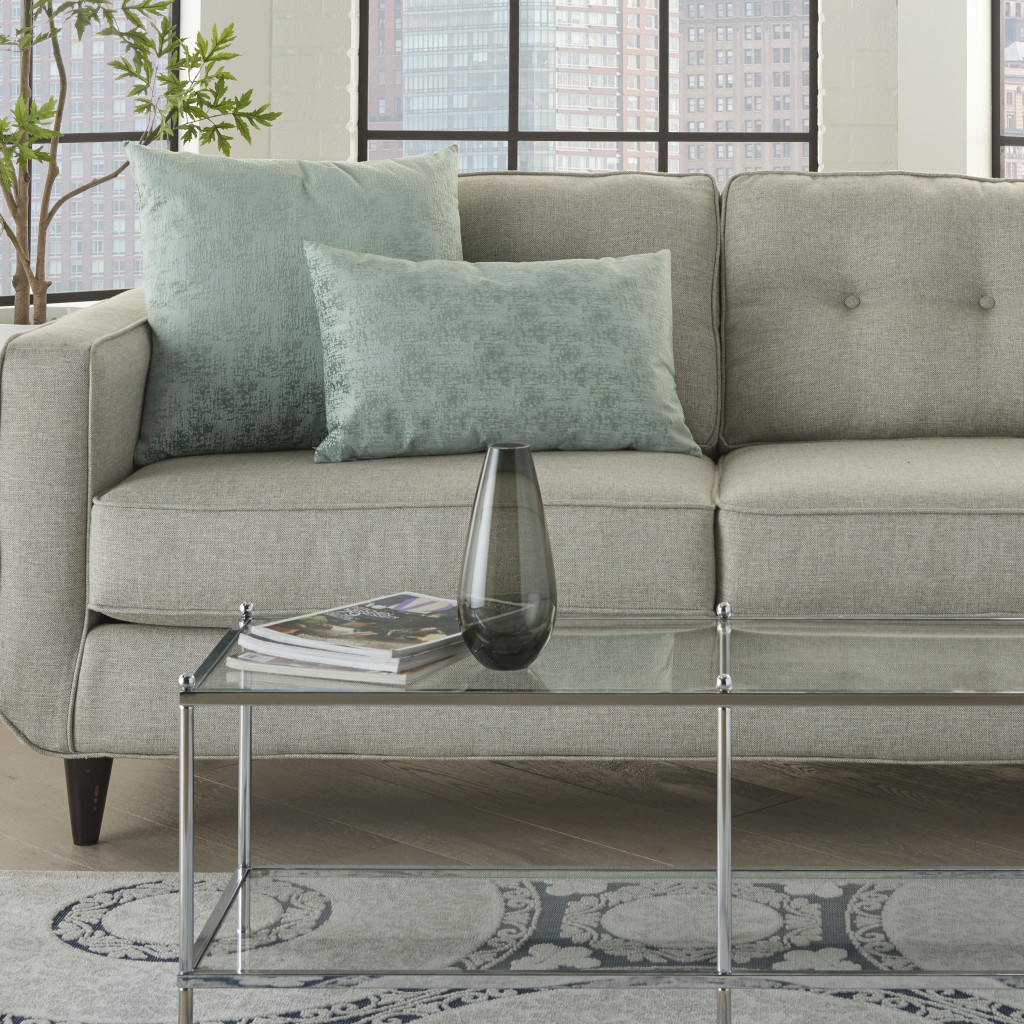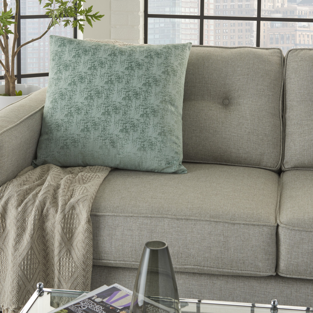 Give the aesthetics of your interior a tint of modernity with this 22-inch green abstract throw pillow. Designed with simplicity in an elite fashion, this pillow features a soft celadon base with distressed sage and celadon hues speckled to create a decent gradient for visual appeal. Super soft and built to hold its shape, this polyester pillow is a great option. Decorative pillows are a great way to change up the look and feel of your space easily and quickly. 22-inch H x 22-inch W x 5-inch D