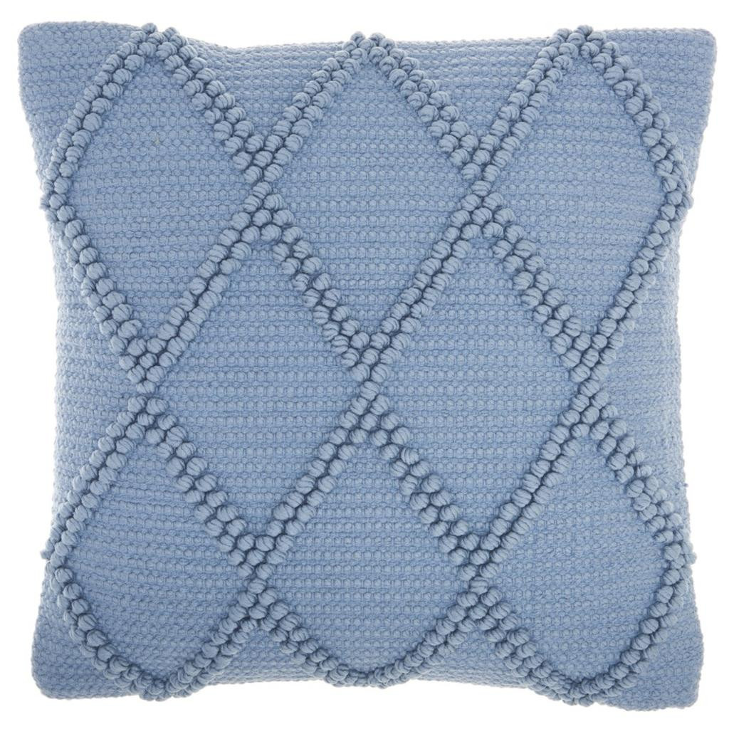 The 18-inch blue diamond cotton blend throw pillow with texture is the perfect decorative accessory for your home. The blue coloring of the extremely durable and long lasting cotton blend will add dimension and texture to your space. This soft polyester filled pillow not only is decorative but made to be comfy and cozy all day long. Great to use on its own or mix with other decorations for the perfect look. A great decorative accessory to add color and dimension to your favorite chair, accent your sofa, or to use as part of your bed ensemble. 18.00-inch h x 18.00-inch w x 5.00-inch d.