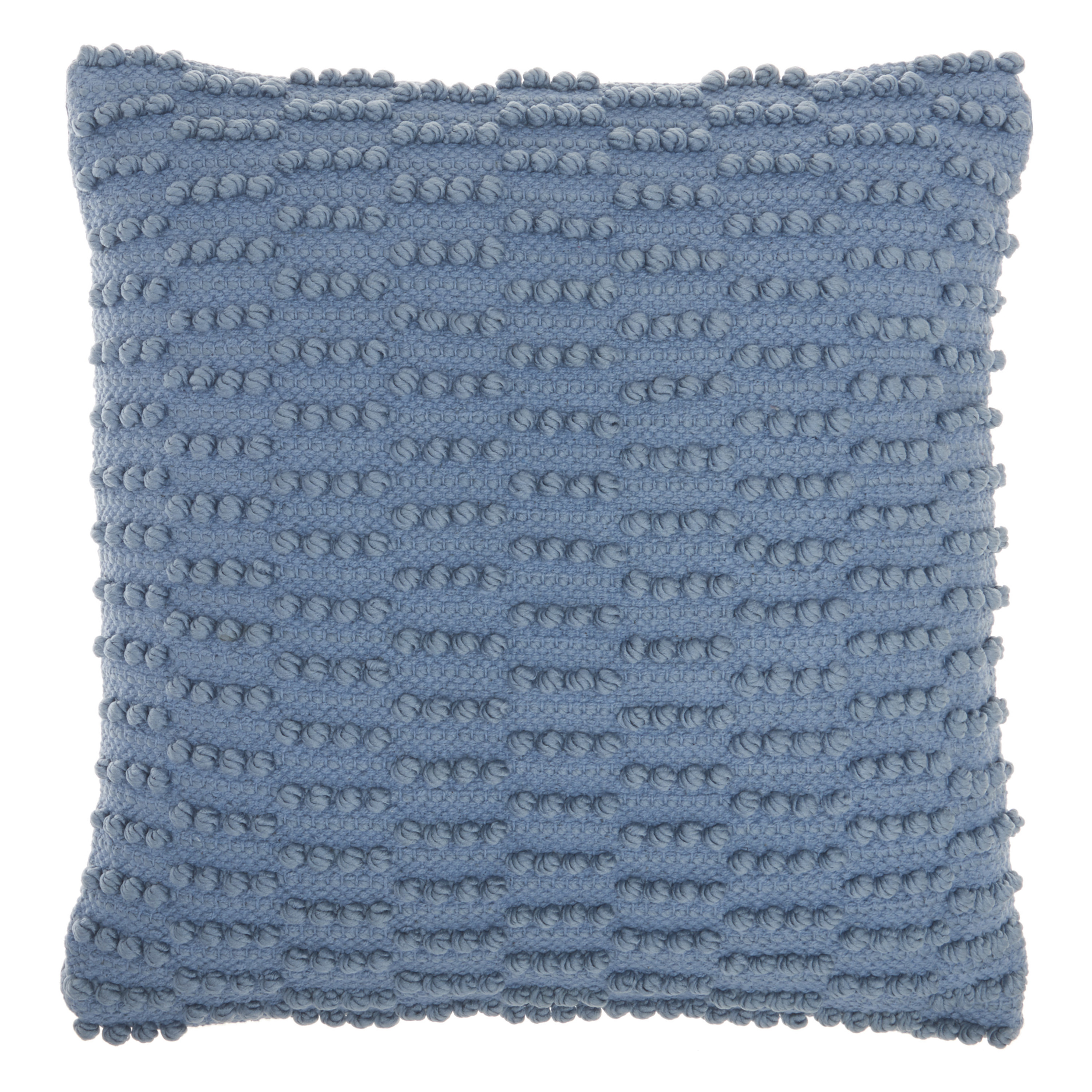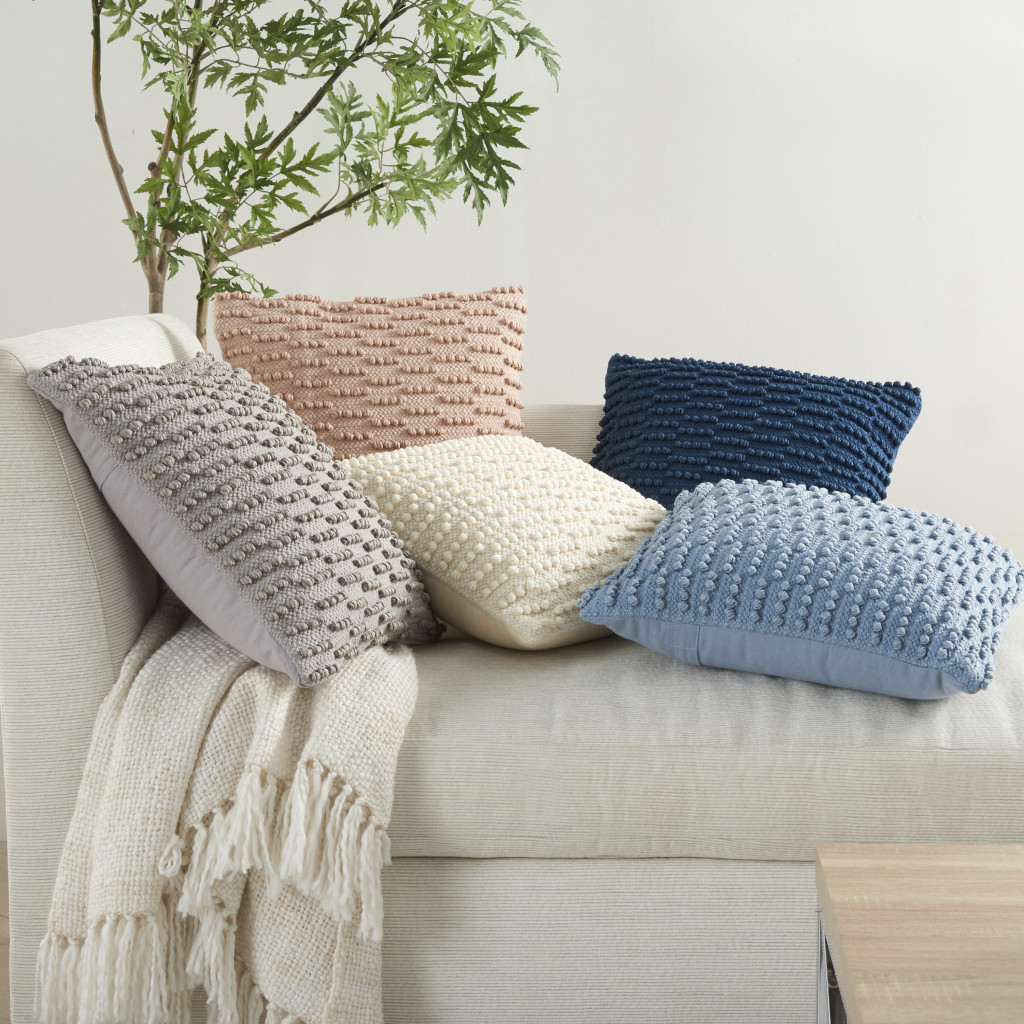 Add an air of fashion to your room and rejuvenate the space with this cute and fashionable 18-inch blue dot and stripe polyester and cotton blend throw pillow with texture. This soft polyester filled pillow not only is decorative but made to be comfy and cozy all day long. Great to use on its own or mix with other decorations for the perfect look. This textural dot and stipe tone on tone pillow will be a great decorative addition to your space. 18-inch H x 18-inch W x 5-inch D