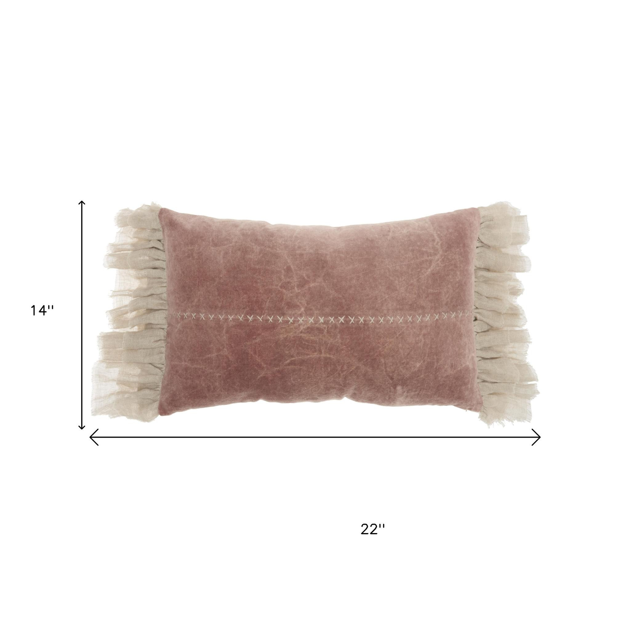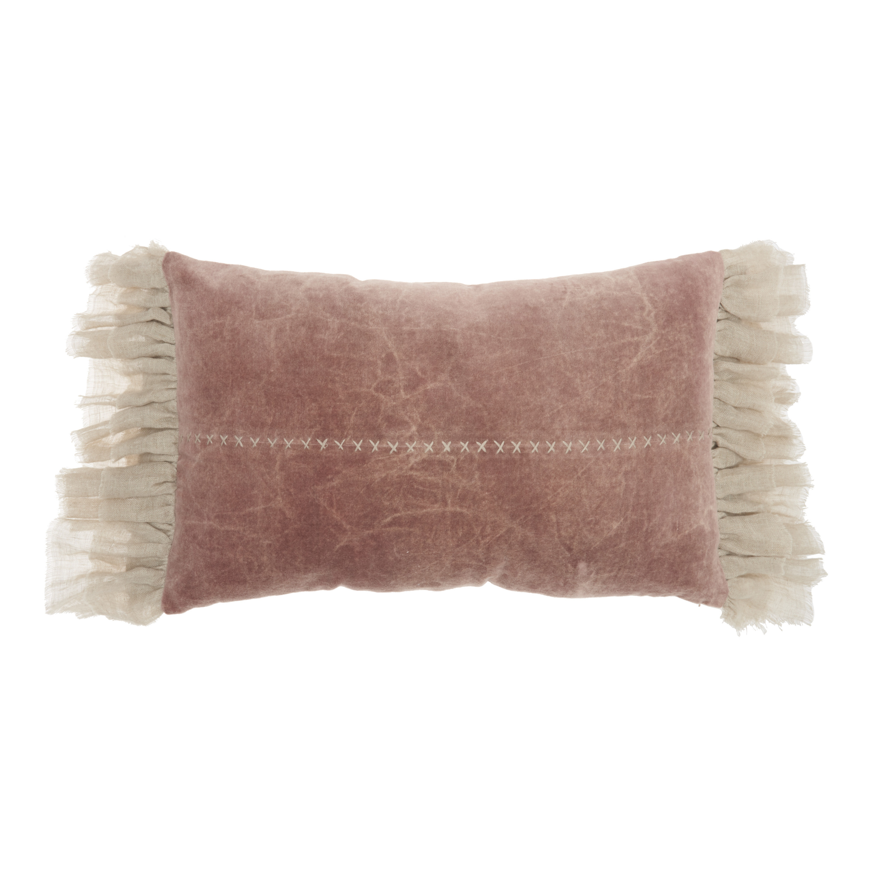 Add an air of fashion to your room and rejuvenate the space with this cute and fashionable wide tasseled marble pink lumbar pillow. This pink hued piece represents quality construction, expertly made from durable cotton blend that is not only long lasting but soft to the touch as well. This soft polyester filled pillow not only is decorative but made to be comfy and cozy all day long. Decorative throw pillows not only add color and dimension to your space but can be comfy and supportive when you are lounging and cuddling as well. Decorative pillows are a great way to change up the look and feel of your space easily and quickly. 14-inch H x 22-inch W x 5-inch D