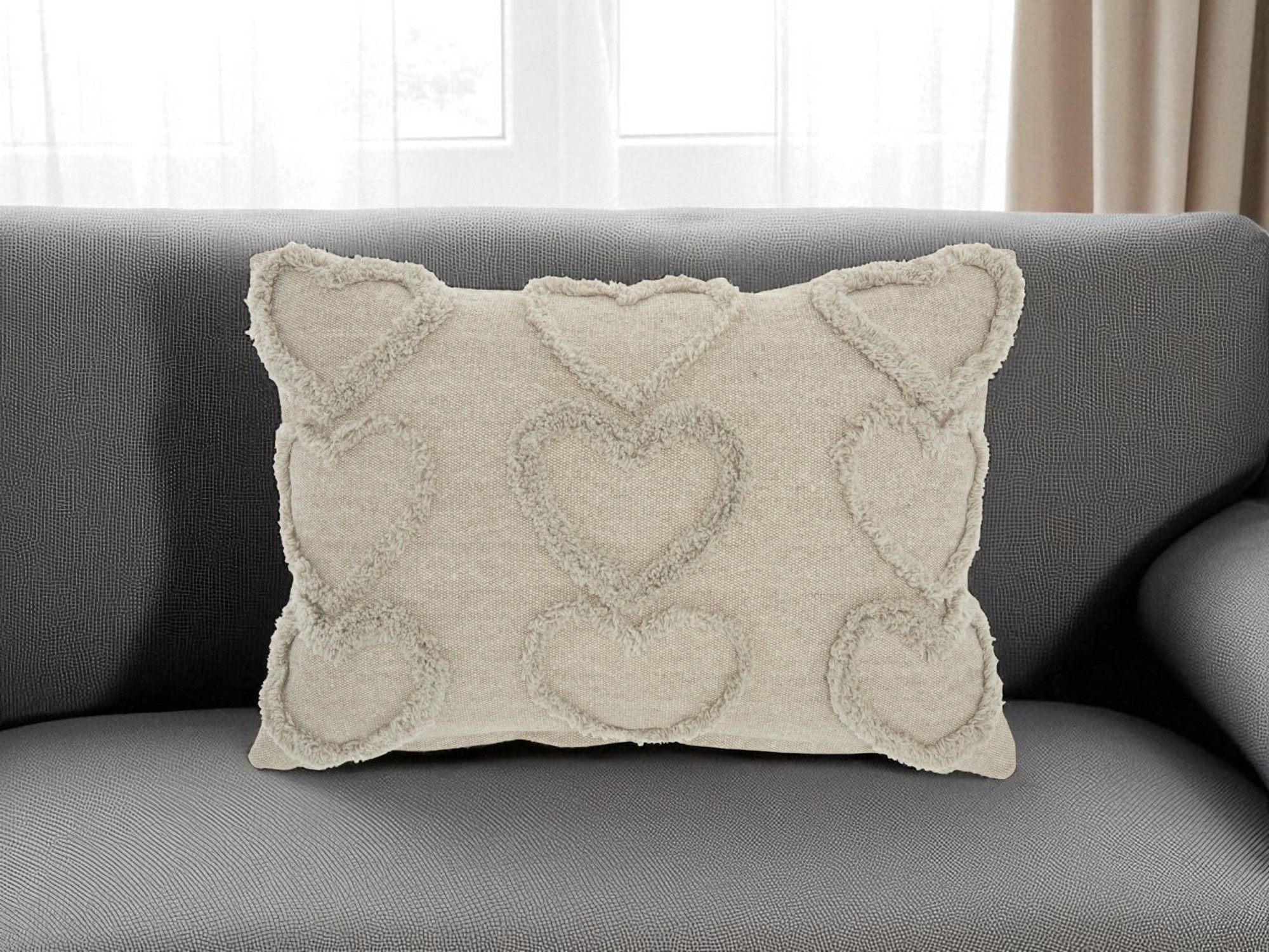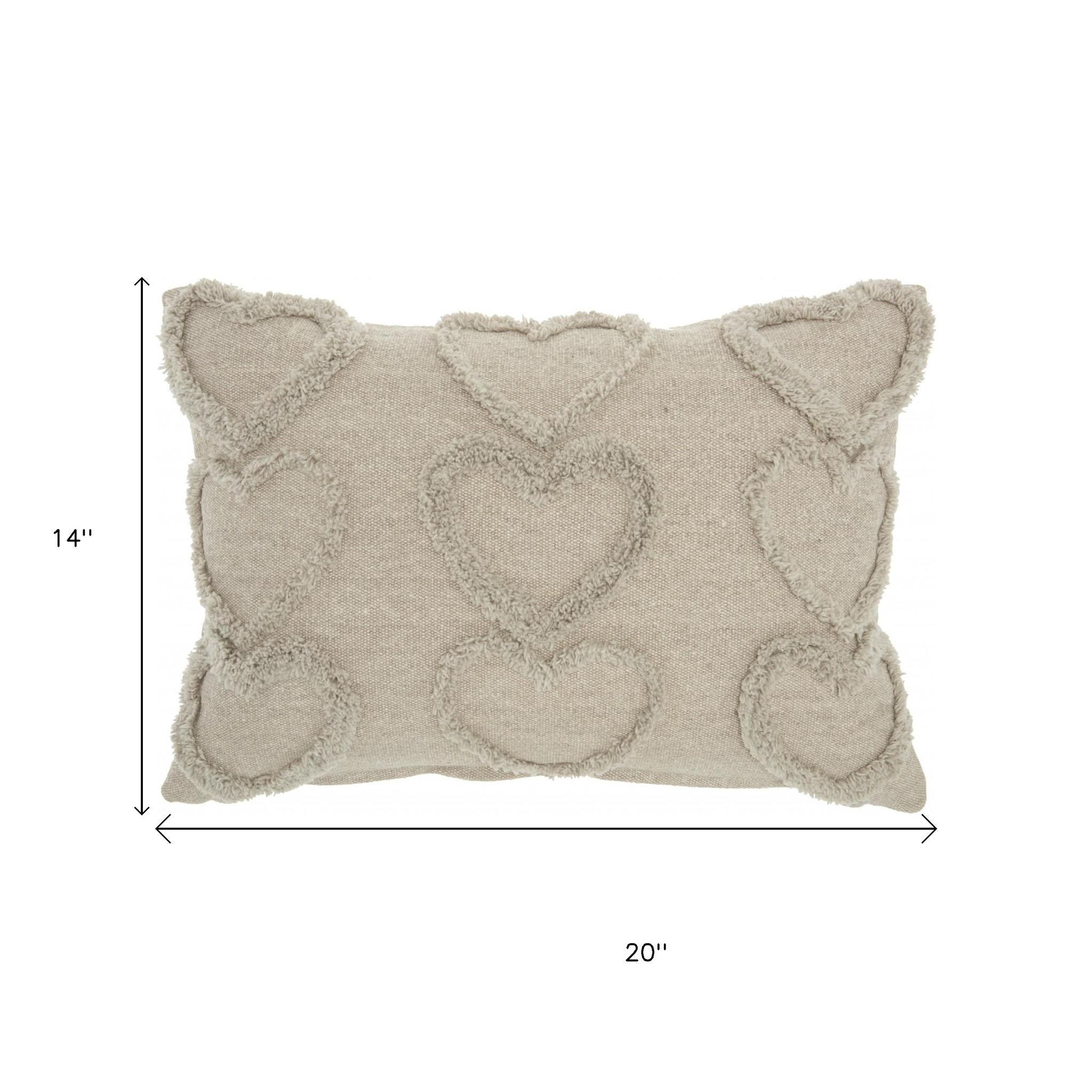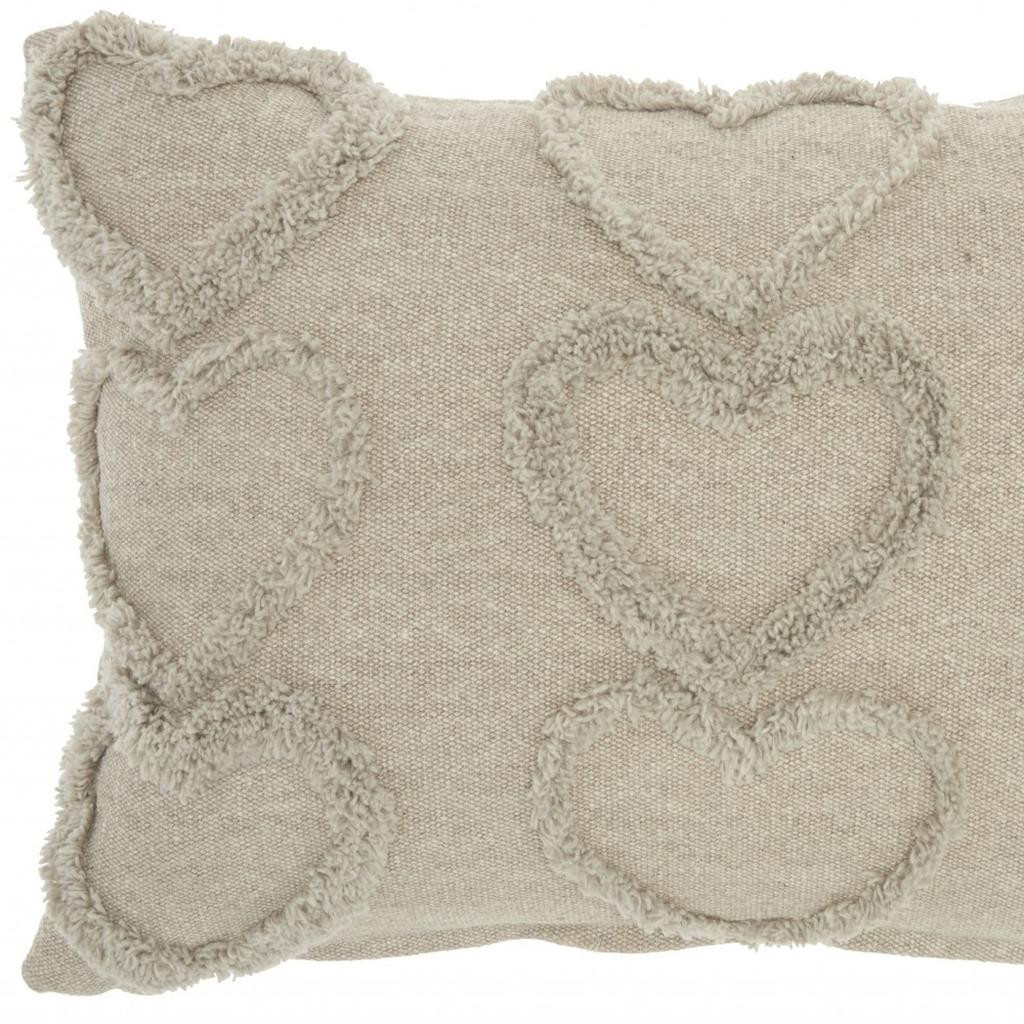 Unique and decorative, this comfortable 14-inch x 20-inch gray heart cotton throw pillow will leave a lasting impression. This gray colored decorative pillow is made from high grade cotton that is durable and long lasting. This soft polyester filled pillow not only is decorative but made to be comfy and cozy all day long. Great to use on its own or mix with other decorations for the perfect look. Decorative throw pillows not only add color and dimension to your space but can be comfy and supportive when you are lounging and cuddling as well. 14-inch h x 20-inch w x 5-inch d.