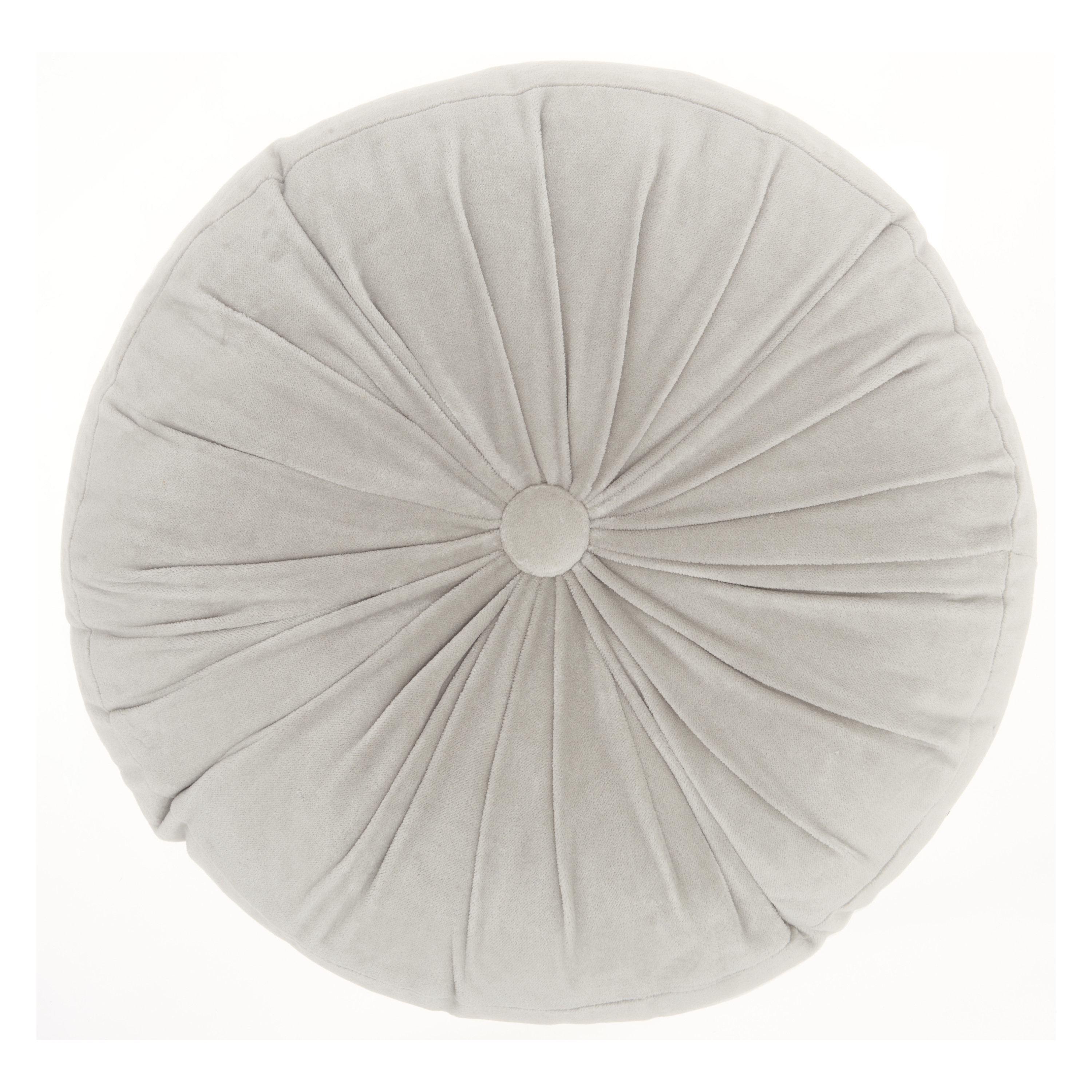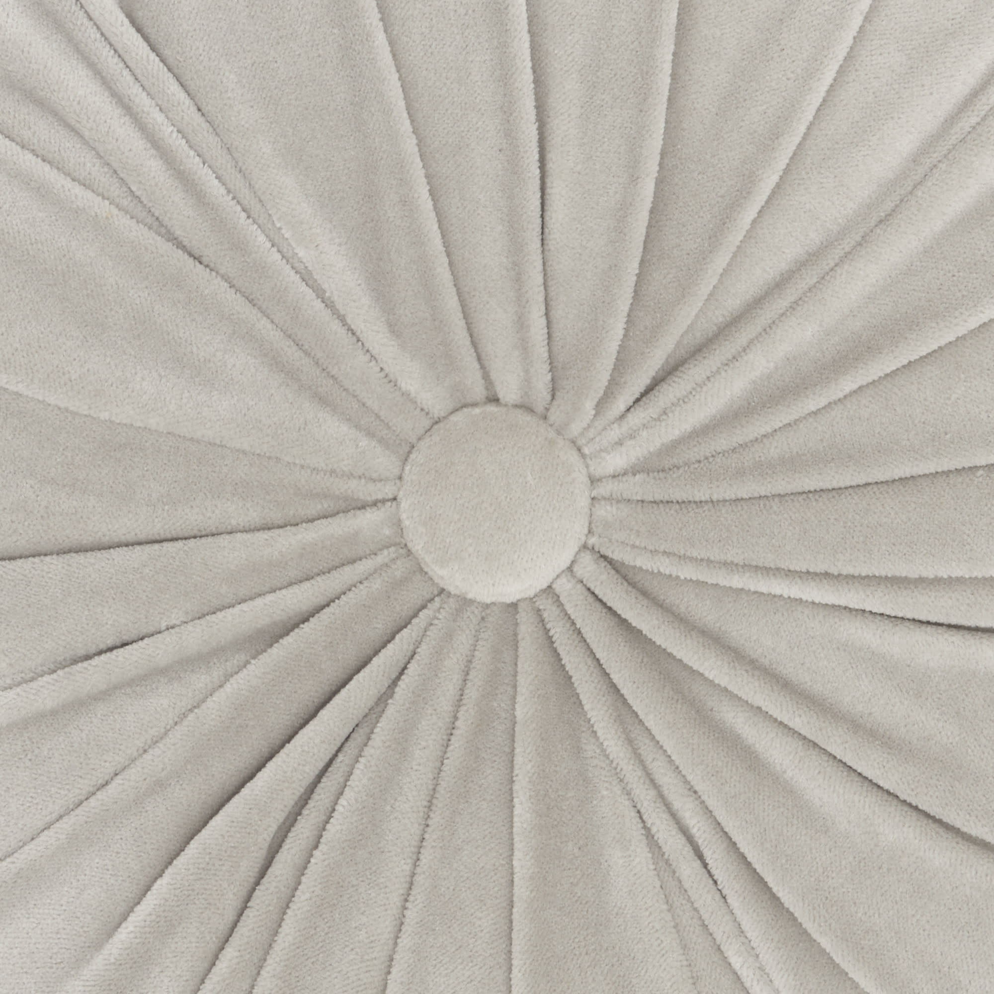 Add an air of fashion to your room and rejuvenate the space with this cute and fashionable 16-inch x 16-inch light gray round velvet throw pillow. This light gray hued piece represents quality construction, expertly made from premium velvet that is not only long lasting but super soft to the touch as well. Super soft and built to hold its shape, this polyester pillow is a great option. Decorative throw pillows not only add color and dimension to your space but can be comfy and supportive when you are lounging and cuddling as well. A great decorative accessory for your favorite chair, to accent your sofa, or to use as part of your bed ensemble. 16-inch H x 16-inch W x 5-inch D