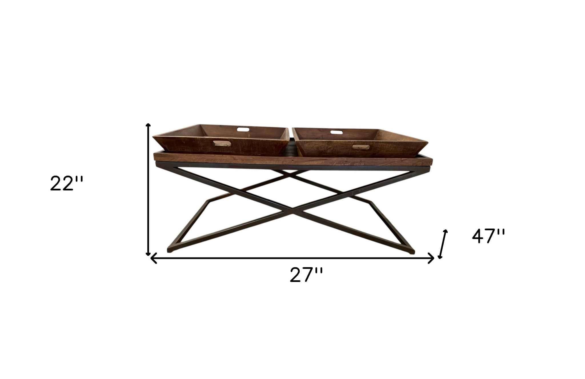 The top of this solid wood table is brown, while the base is a nice compliment in black. This unique tray top shape of the table adds dimension and extra storage. This classic rectangular table will be a great accent in any room it has an attractive design that will definitely breathe some fresh air into your interior. 22-inch h x 27-inch w x 47-inch d.