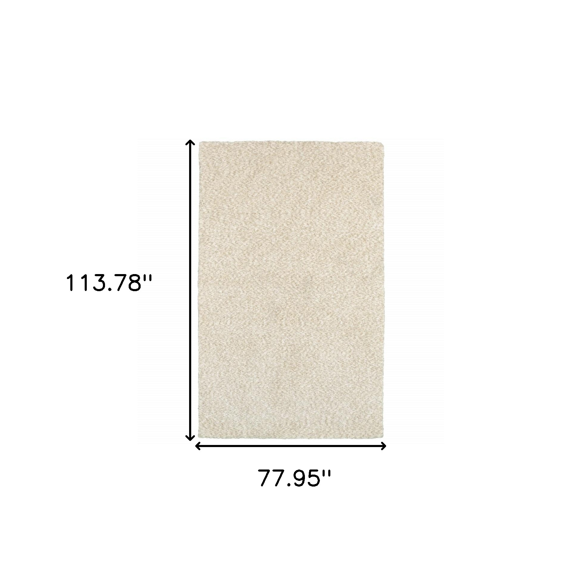 Simple, stylish, and sophisticated- all the elements of modern luxury are flaunted by this Modern Shag Ivory Indoor Area Rug to emphasize a contemporary touch to your living space. Perfectly in line with the trend, this beautiful one-toned area rug is skillfully handcrafted with 100% microfiber of polyester for enhanced durability. The shaggy and sophisticated look comes from the dense pile surface construction that feels super soft and cozy, making it an ideal choice for indoor usage. Made to impress, this luxurious area rug in a neutral shade of ivory effortlessly blends in with any interior theme while complementing all the modern decors of this time. 6’6" x 9’6"