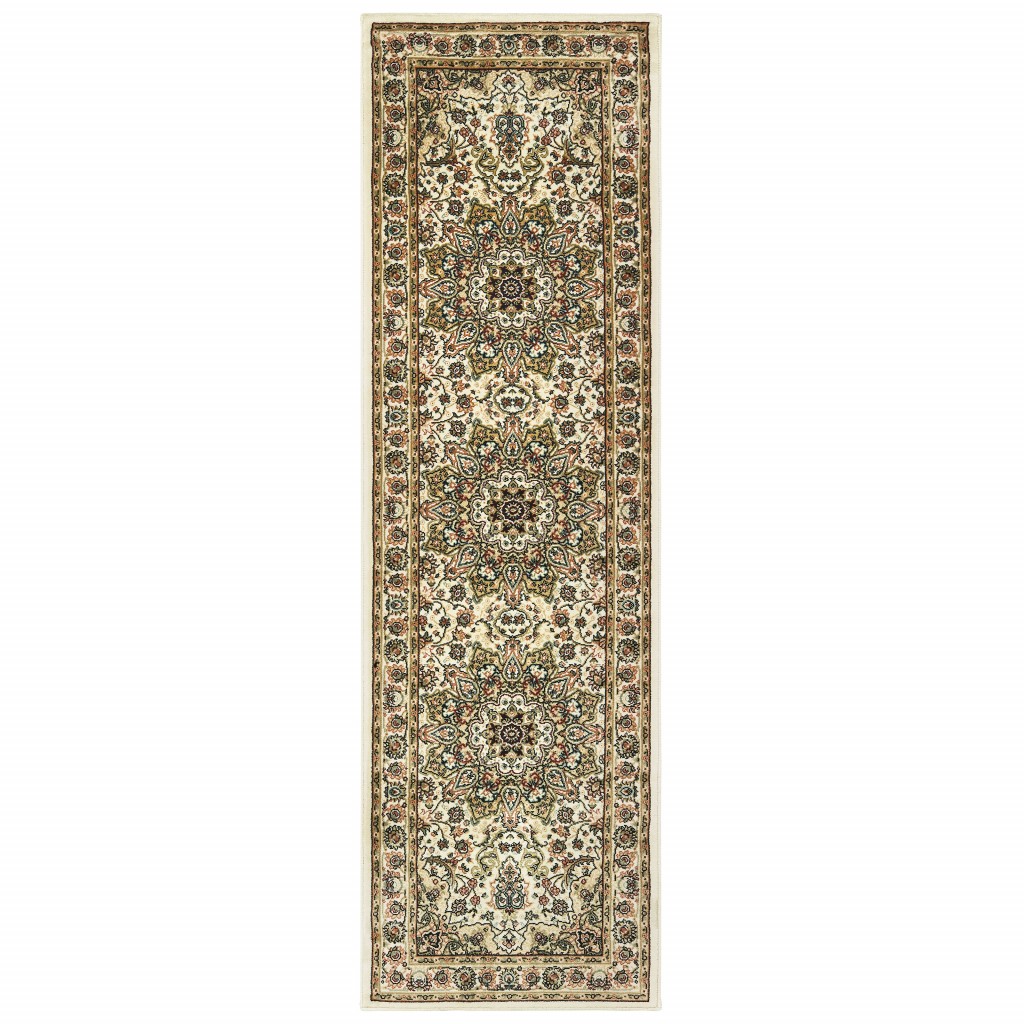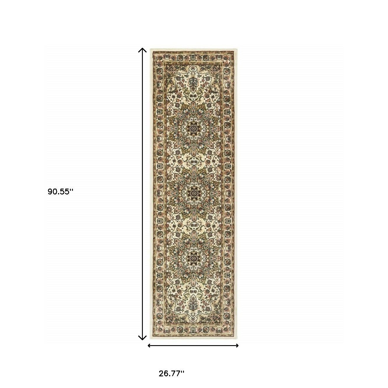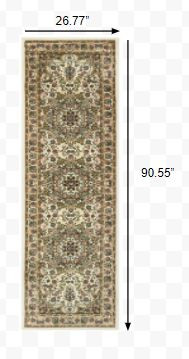 Set an inviting tone in your space with this 8-foot beige and ivory runner rug. Built to last, this rug crafted from polypropylene fibers is known for its durability and long lasting appeal. Rugs are a great way to showcase your style, hide imperfections, warm your home and reduce noise. This traditional style runner makes a great accent for the hallway, in front of cabinets, in the laundry room, or any other space you need a narrow and long rug. 26.77-inch h x 90.55-inch w x 0.32-inch d.