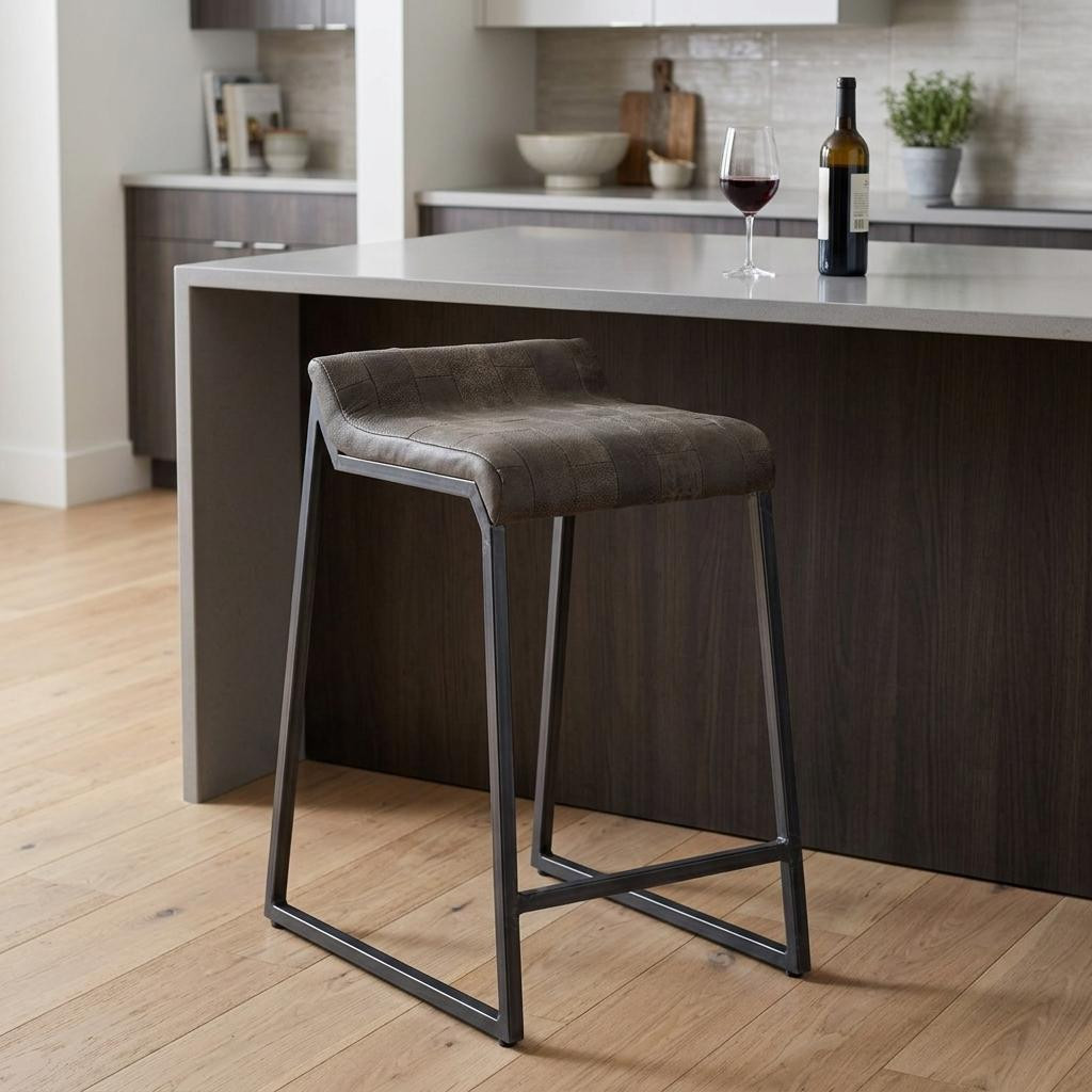 With this 25-inch bourbon brown and black leather and iron low back counter height bar chair with footrest you can add design and extra seating to your space. Quality construction from black iron combines with brown leather to give this stool a fresh and updated look. A low back mixed with a square shaped seat design makes this chair both comfortable and fashionable. Designed with a footrest for comfort and convenience. 27-inch H x 16.4-inch W x 20.4-inch D