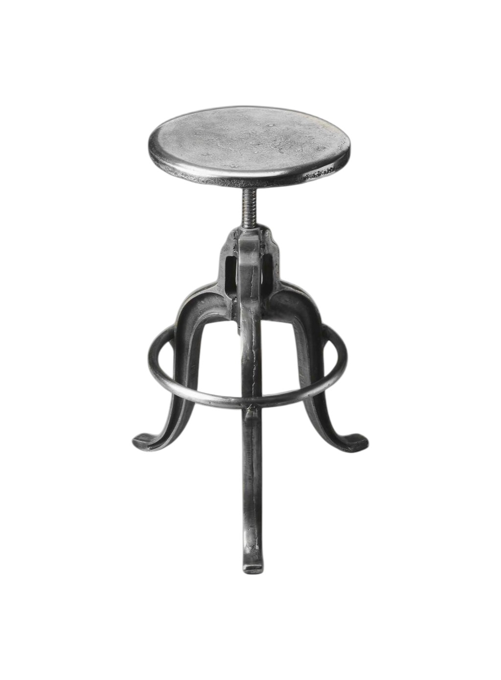 Upgrade your home bar with our sleek and stylish bar chair. Crafted from durable iron, this 28-inch silver chair features a backless design that adds a touch of sophistication to any space. With its swivel feature, you can easily turn around and join conversations with ease. The tripod leg/base provides stability and ensures long-lasting use. The transitional style seamlessly blends with any decor, while the silver color adds a modern touch. Whether you're sipping cocktails or enjoying a quick snack, this comfortable bar chair will elevate your home bar experience. 22-inch H x 19-inch W x 16.5-inch D