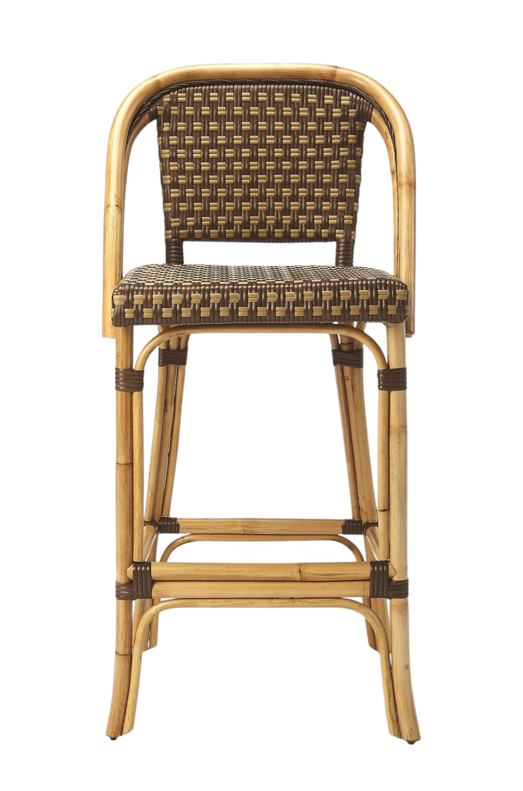 Bring a trendy bar vibe to your space with this stylish 28-inch brown bar chair. Designed with a full back seat, it offers comfort and support as you unwind. The seat height, measured from the floor to seat, is 28 inches, providing the perfect perch for your bar or counter. Crafted with high-quality rattan material, this chair exudes a transitional style that effortlessly complements a variety of home decors. Supported by four sturdy legs, it guarantees stability and longevity. Its rich medium brown color adds warmth and sophistication to any room. Elevate your seating experience with this captivating bar chair. 40.5-inch H x 20-inch W x 19-inch D
