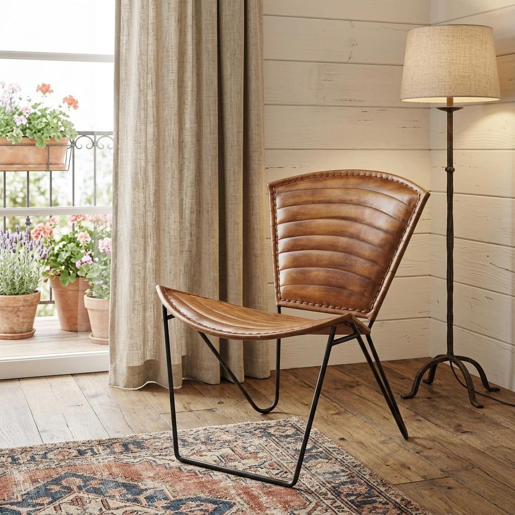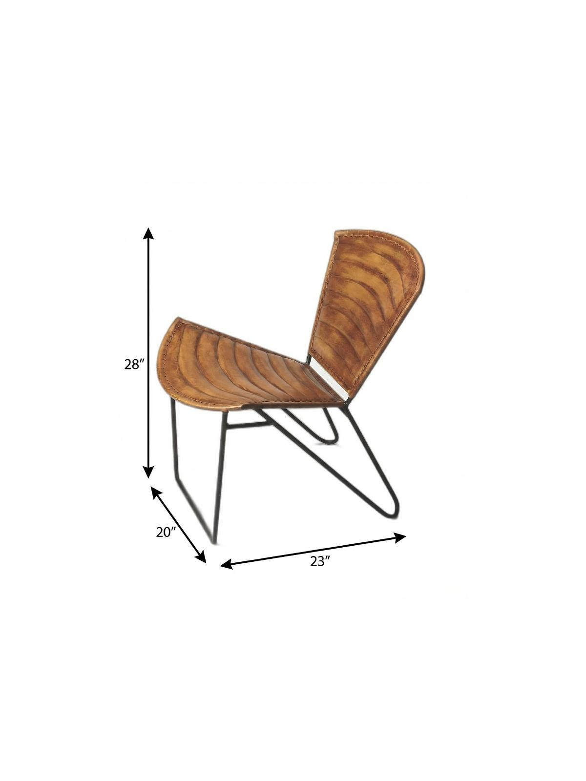 Fill your living room, bedroom, or office with fashionable seating options with this 23-inch brown and black leather and iron striped side chair. This sturdy side chair comes upholstered in a refreshing classic brown striped leather to give your space just the right look. The frame and butterfly style legs are built with high quality iron, and feature an armless design with split back that features a rustic, modern industrial style. 28.00-inch h x 23.00-inch w x 20.00-inch d.