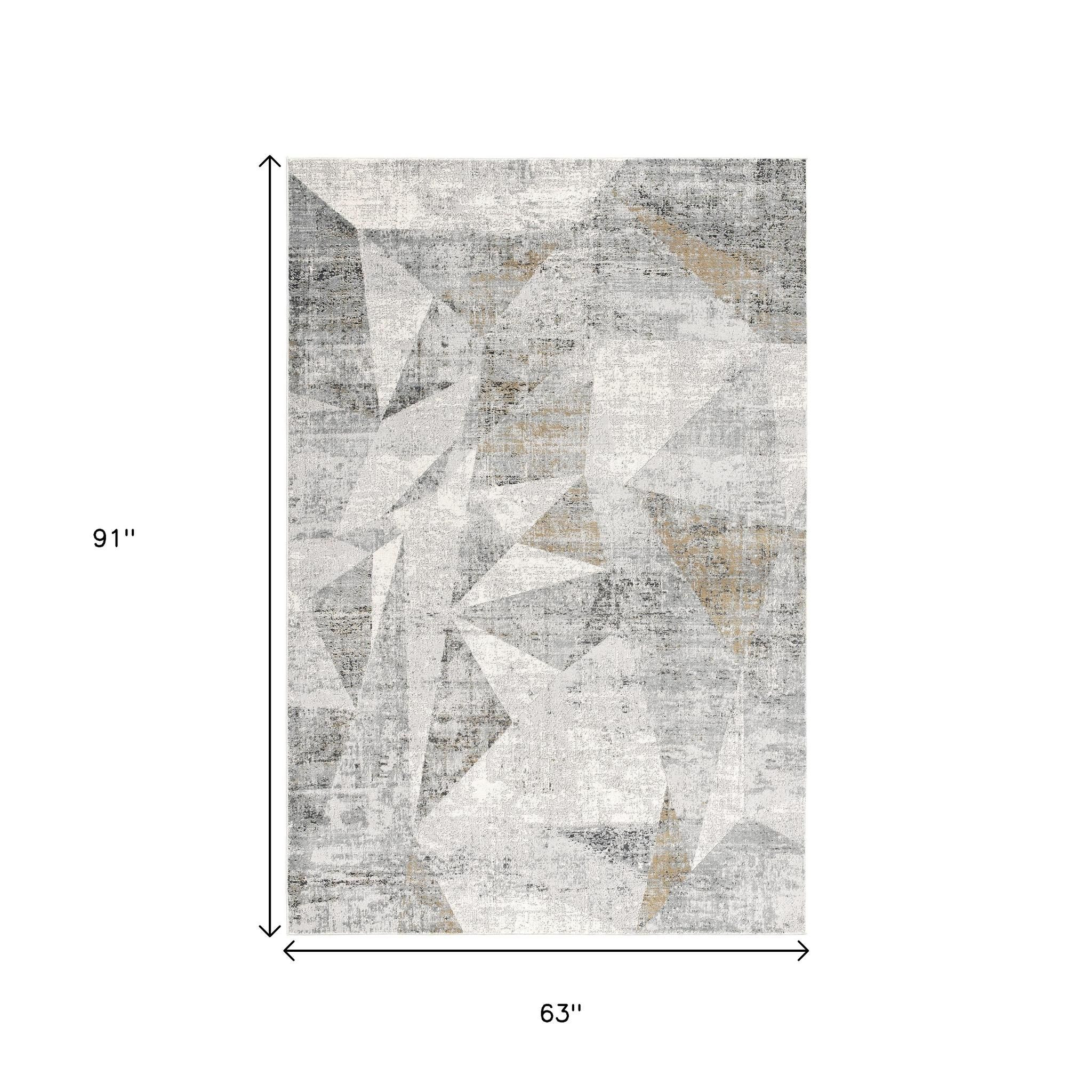 Sleek and sophisticated in neutral hues, this Gray Distressed Prism Modern Area Rug upholds the true essence of contemporary styling in patterns and palette. The prism patterns in the variegated shades of grays and slight tints of beige are given a distressed effect for a pleasantly worn appearance. Made in Turkey with viscose and polyester mix to ensure durability and stain resistance while giving off a glossy sheen for visual interest. The low pile construction adds to smooth surface texture for a velvety feel under the feet, making it a great choice for your bedroom or living space with heavy foot traffic. Enhance the aesthetics of your modern living space with this trendy area rug that will make your home feel complete without being too loud. 91” x 63” x 0.4”