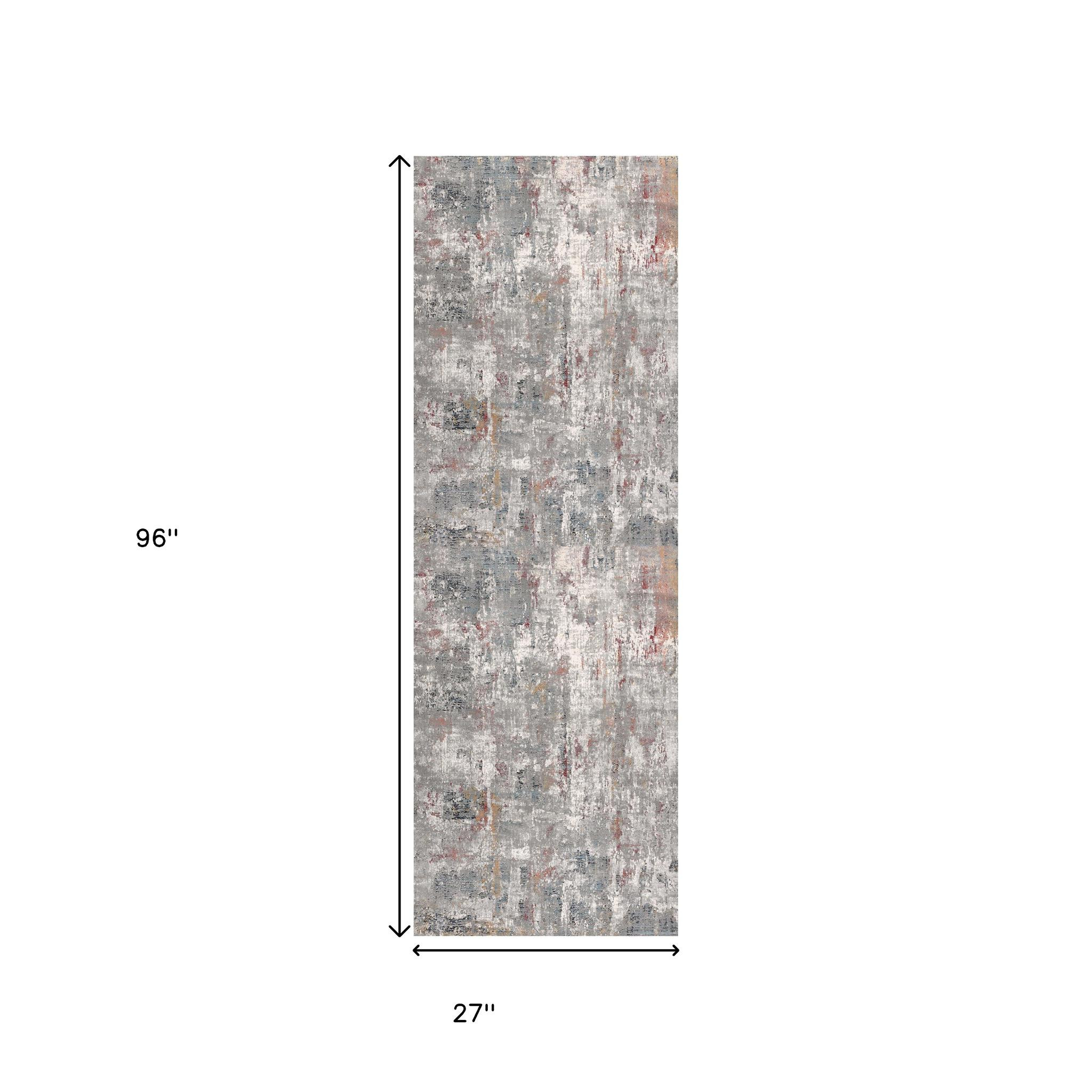Leaving the space for interpretation, this Gray and Ivory Abstract Runner Rug will evoke an emotional connection and make you explore the artwork on the floor. The skillful use of gray and ivory with hints of brown accents creates a unique composition that allures the gaze without depicting any visual reality. Made to ensure durability and stain resistance while keeping its shimmery effect, this rug is crafted in Turkey with a blend of viscose and polyester to accentuate a practical piece worthy of keeping indoors. The low pile construction adds to the neat and smooth surface texture making it easy to clean while being a great option for areas with heavy foot traffic. Whether you lean towards complement or contrast, you can flaunt your taste of style with this neutral runner rug rolled on the floor. 96” x 27” x 0.4”