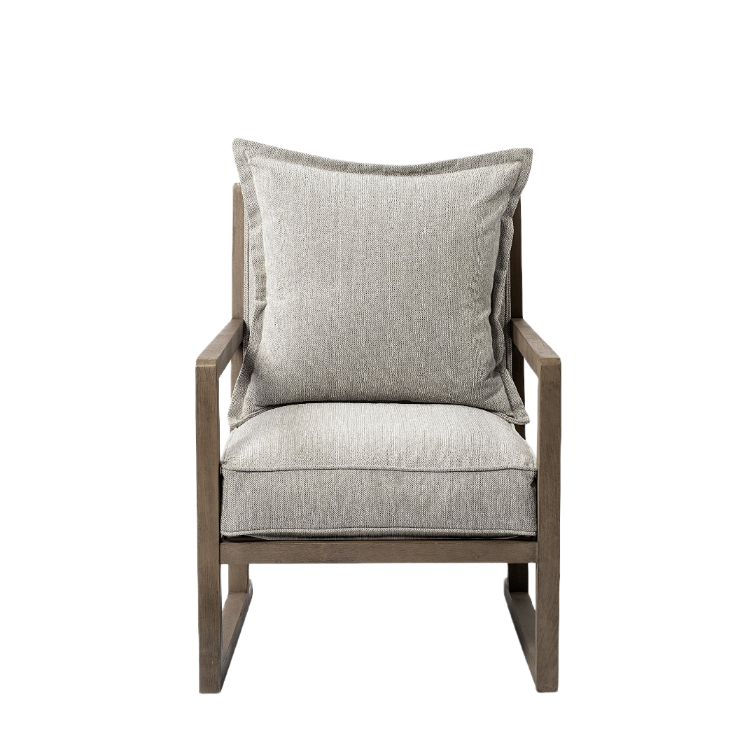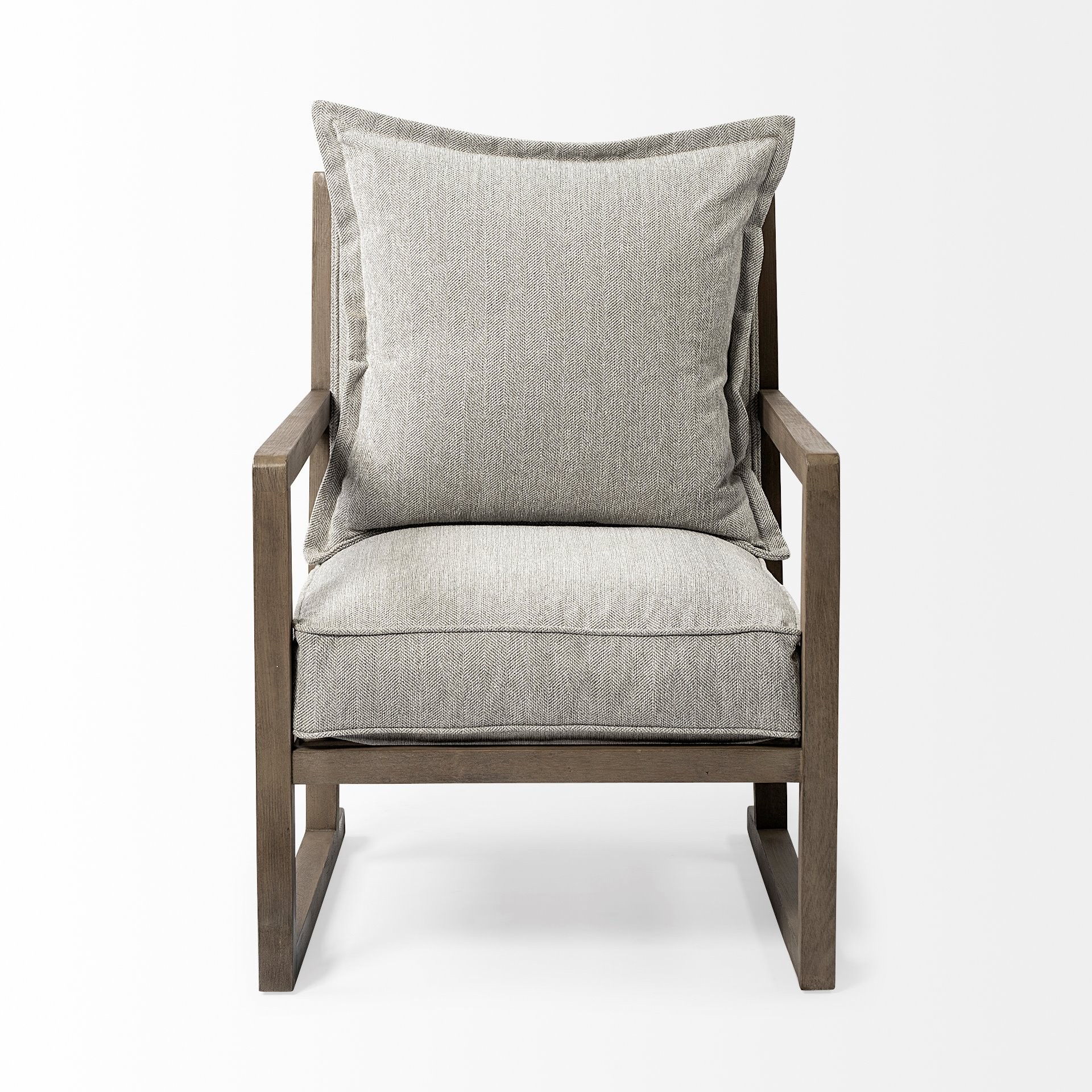 A mix of form and function, this 32-inch ash gray and brown fabric arm chair will bring a good looking and usable accent to your space. Built to last this arm chair is finished in solid ash gray fabric to give your room a great update. The high quality solid wood inner frame flaunts convenient armrests and a cushion back that are complimented by soft and comfortable cushioning. 34.25-inch h x 32.28-inch w x 25.98-inch d.