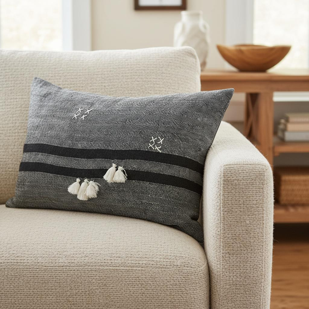 gray detailed lumbar throw pillow, detailed lumbar throw pillow cover, lumbar throw pillow cover, detailed lumbar throw pillow, dark gray detailed lumbar throw |