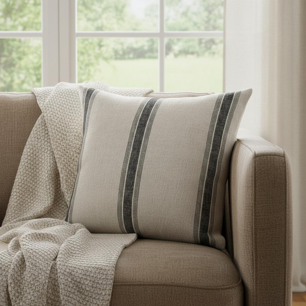 beige black striped pillow cover, black striped pillow cover, beige black striped pillow, striped pillow cover, black striped pillow |
