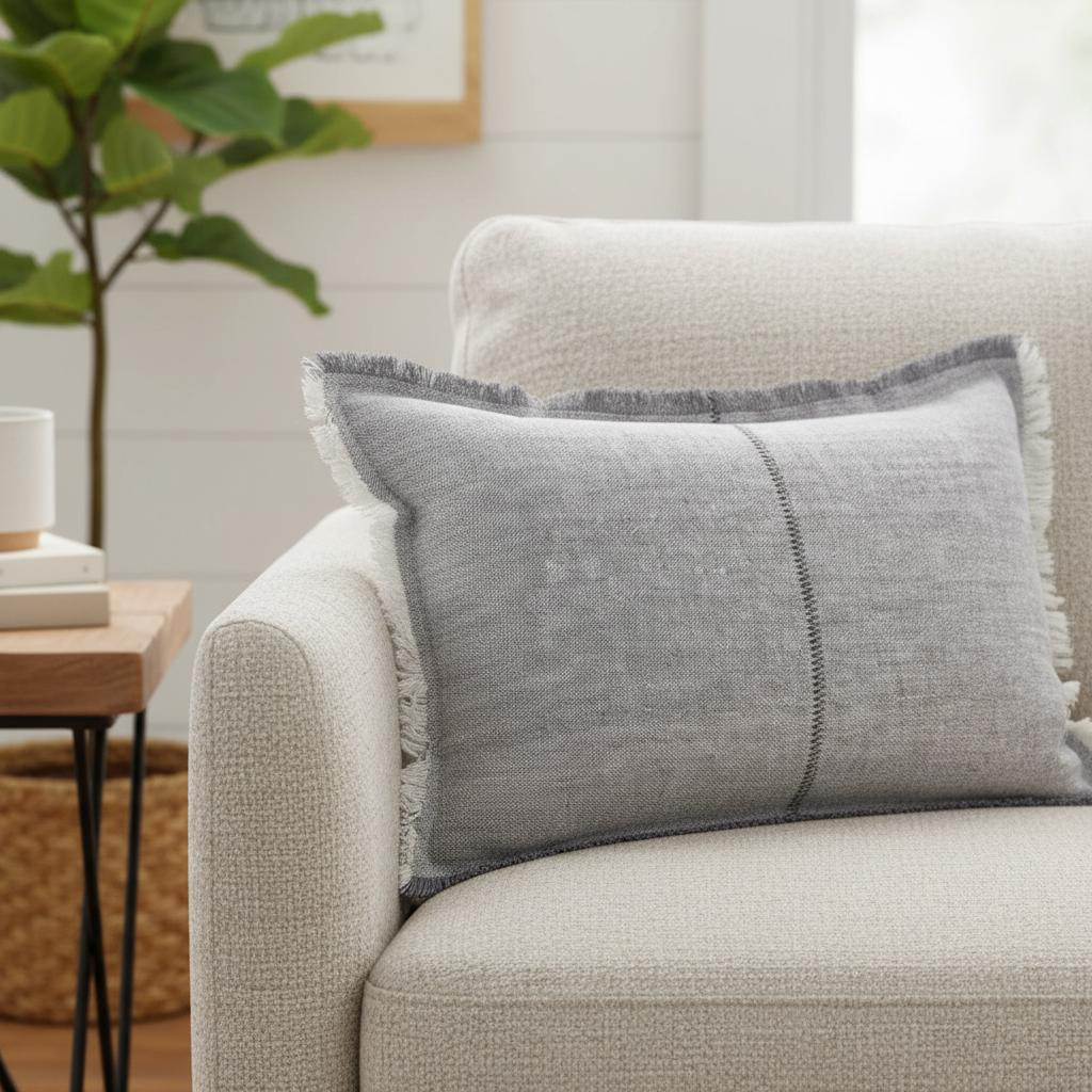 gray fringed lumbar throw pillow, fringed lumbar throw pillow cover, lumbar throw pillow cover, fringed lumbar throw pillow, light gray fringed lumbar |