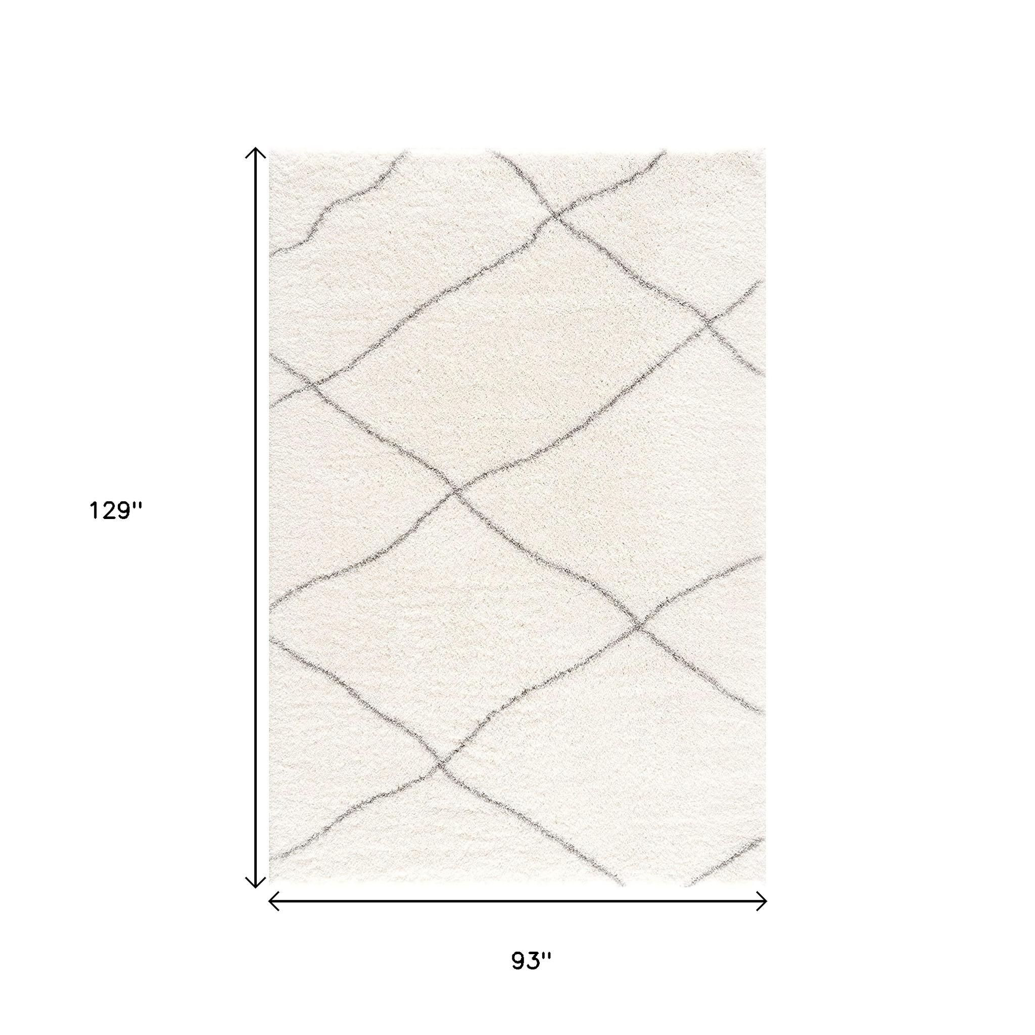Calm and comforting just by the looks, this Ivory Modern Uneven Lattice Area Rug will add a luxurious and lighthearted vibe into your contemporary space. Designed to resemble freehand pencil lines drawn to create uneven lattice on a spotless ivory backdrop accentuating a sense of imperfection on a perfect base. Crafted in Turkey with super soft and 100% premium polyester fibers with a dense pile to ensure a cozy and comfortable underfoot that won’t flatten over time. This shaggy rug will make your home look and feel lavish and won’t let your children or toddlers get hurt when they fall. Incredibly simple yet sophisticated from every angle, this area rug will uphold the aesthetics of your modern space while making you feel like you’re walking on the clouds! 129” x 93” x 1.6”