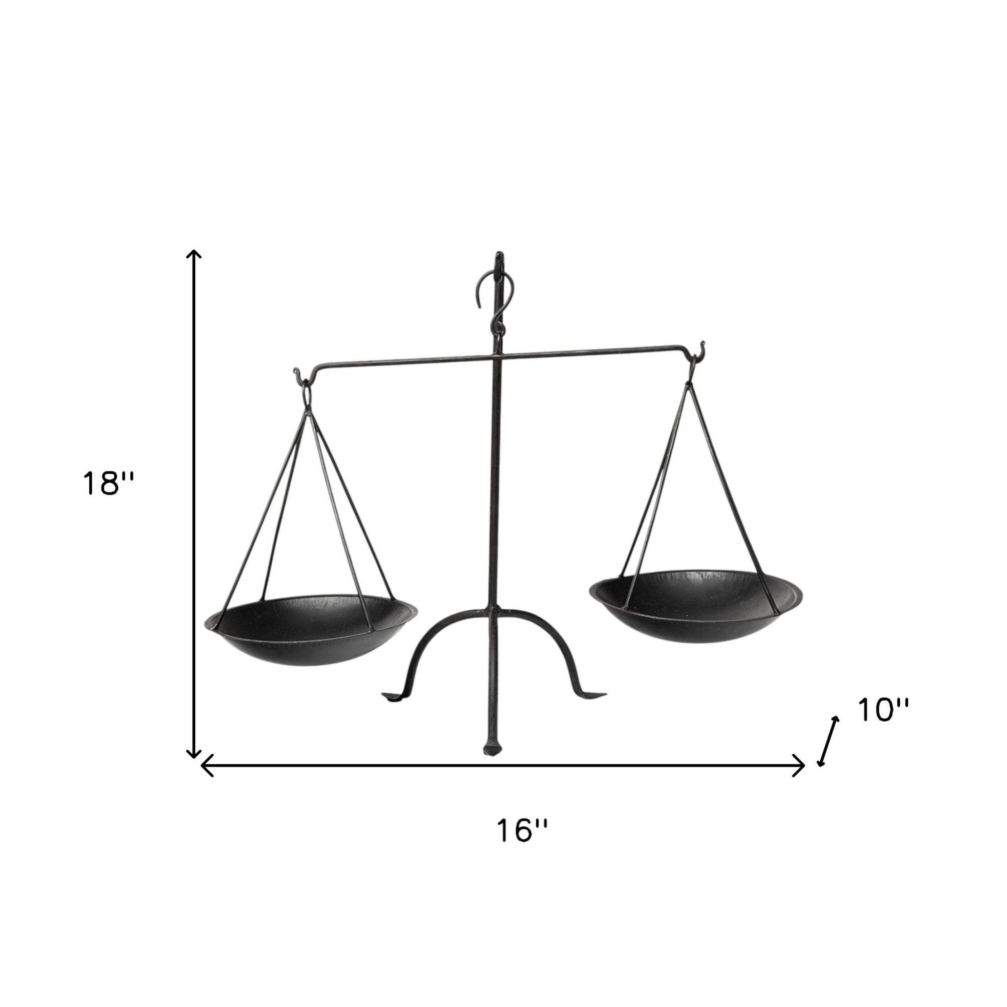 This Libra Dark Metal Vintage Decorative Scale is the perfect mix of vintage design and contemporary statement decor. This decor piece is made from solid metal and has a rustic black nickel finish on top. There is a three-legged bottom which has a vertical column coming out of it with a hook at the top end of it. The design of the body is sleek and thin which is a running theme in the whole decor piece. The hook has a horizontal rod which holds the weighing bowl at either end. This decor piece will not only elevate the look of your living room or library but will be a fun piece to add to your kitchen decor. 18" H x 10" W x 16" D