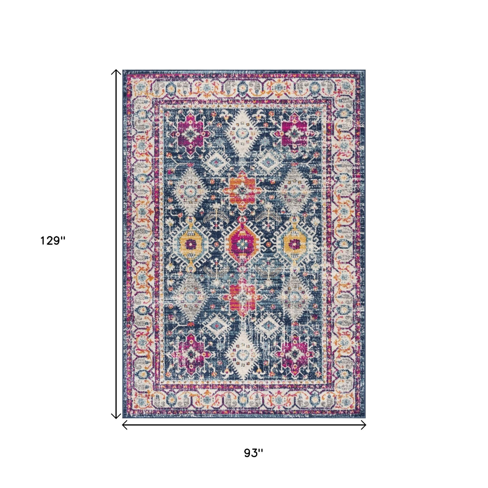 Add some artistry to your room with this 8-foot x 10-foot blue and ivory oriental area rug. This rectangle shaped rug features a oriental design in blue and ivory to give it visual interest. A classic shape marries with good looking design for your space place this area rug against a hardwood or tile floor and it will enliven your living space with style and sophistication. 93-inch H x 129-inch W x 0.4-inch D