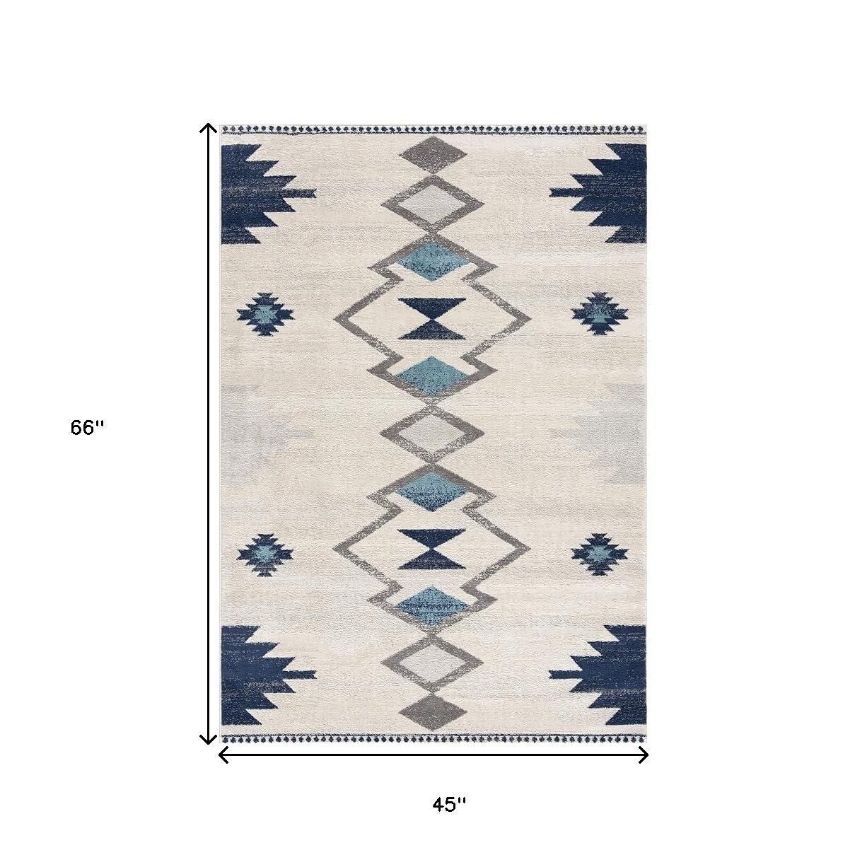 Add great coloration and comfortable texture to your space with this 4-foot x 6-foot blue and ivory southwestern area rug. This rectangle shaped rug features a southwestern design in blue and ivory to give it visual interest. A classic shape marries with good looking design for your space place this area rug against a hardwood or tile floor and it will enliven your living space with style and sophistication. 45-inch H x 66-inch W x 0.4-inch D