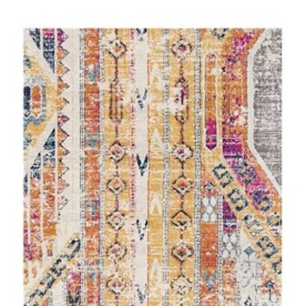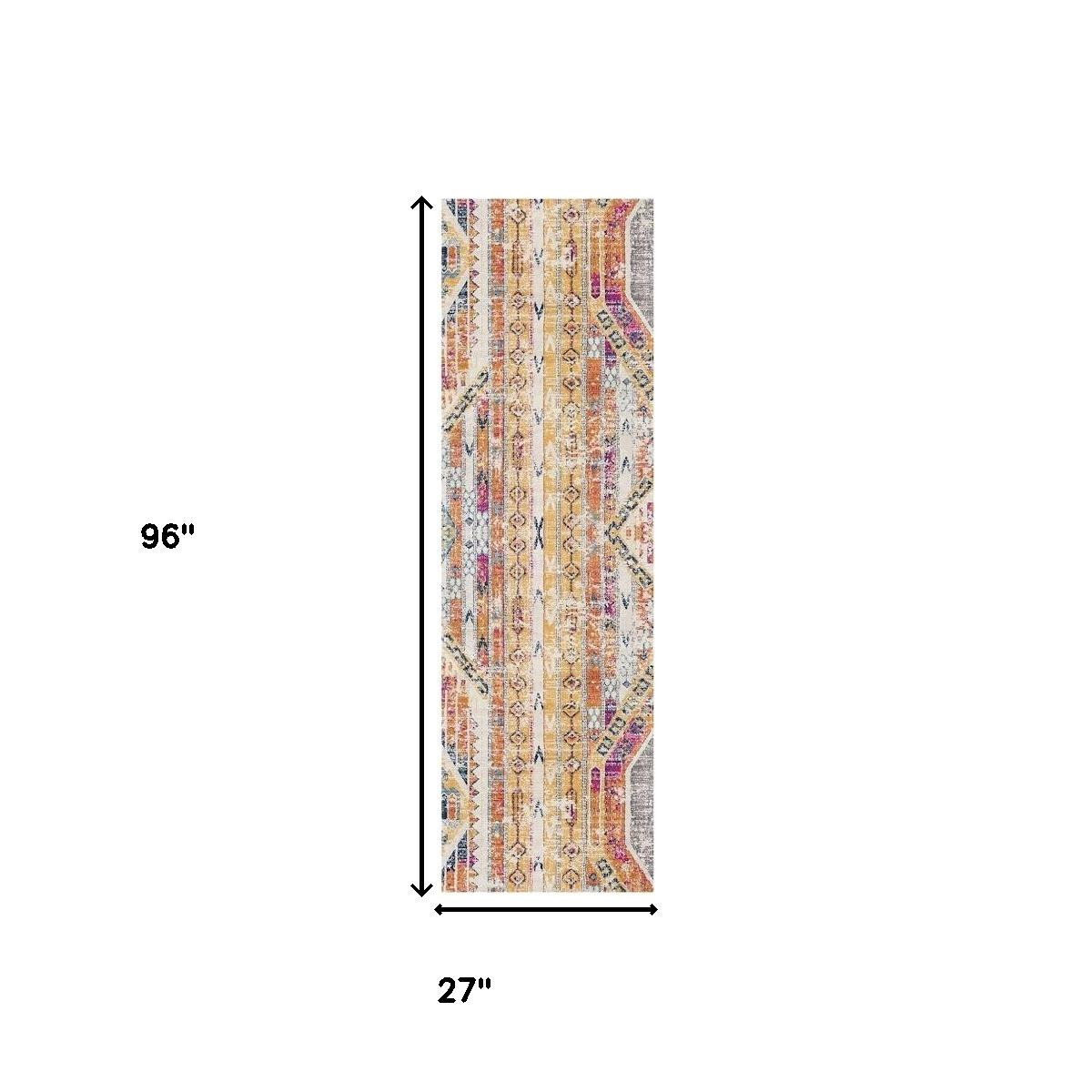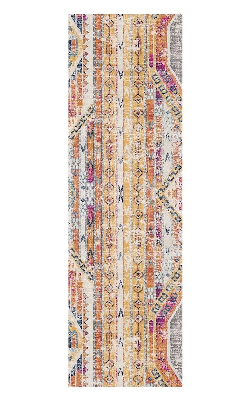 Add great coloration and comfortable texture to your space with this 8-foot gold and ivory southwestern runner rug. Built to last, this rug crafted from polypropylene fibers is known for its durability and long lasting appeal. Rugs are a great way to showcase your style, hide imperfections, warm your home and reduce noise. This rectangular shaped rug features a abstract design that will add a functional and decorative accent to your space. This modern style runner makes a great accent for the hallway, in front of cabinets, in the laundry room, or any other space you need a narrow and long rug. 27-inch h x 96-inch w x 0.4-inch d.
