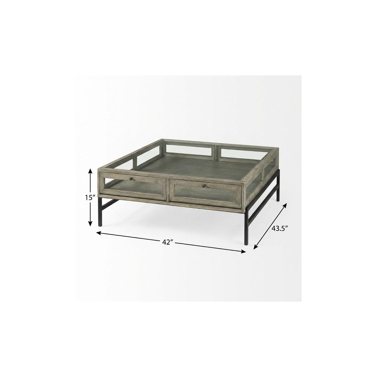 glass metal square coffee table, metal square coffee table shelf, square coffee table shelf, coffee table shelf, 42" gray black glass |