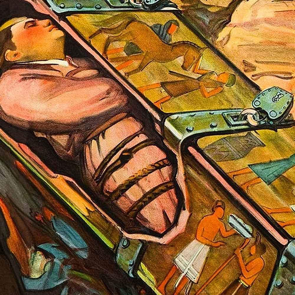 Bring some sizzle to your space with this eye-catching c1926 Houdini Master Mystifier vintage magic print wall art. Unframed, this flat poster has a fresh and distinct taste to grace your walls with style. Reproduced for you on paper, this hanging decorative accent features the world famous Houdini buried alive with an Egyptian flair as an advertisement for the Literary Digest. Featuring magic, illusions, and escapes this colorful visual will liven up your space with mystery and intrigue. 14 inches H x 11 inches W x 0.1 inches D