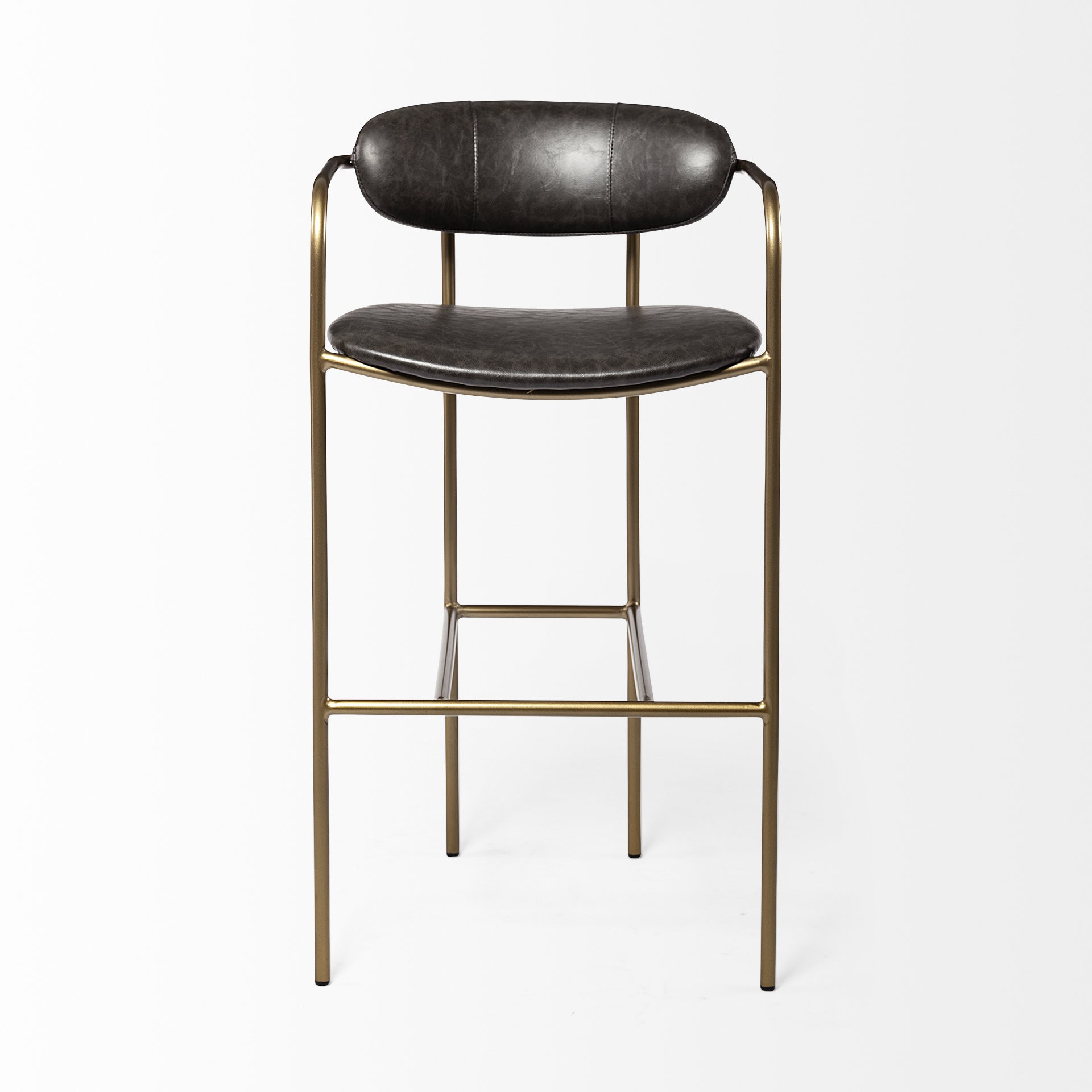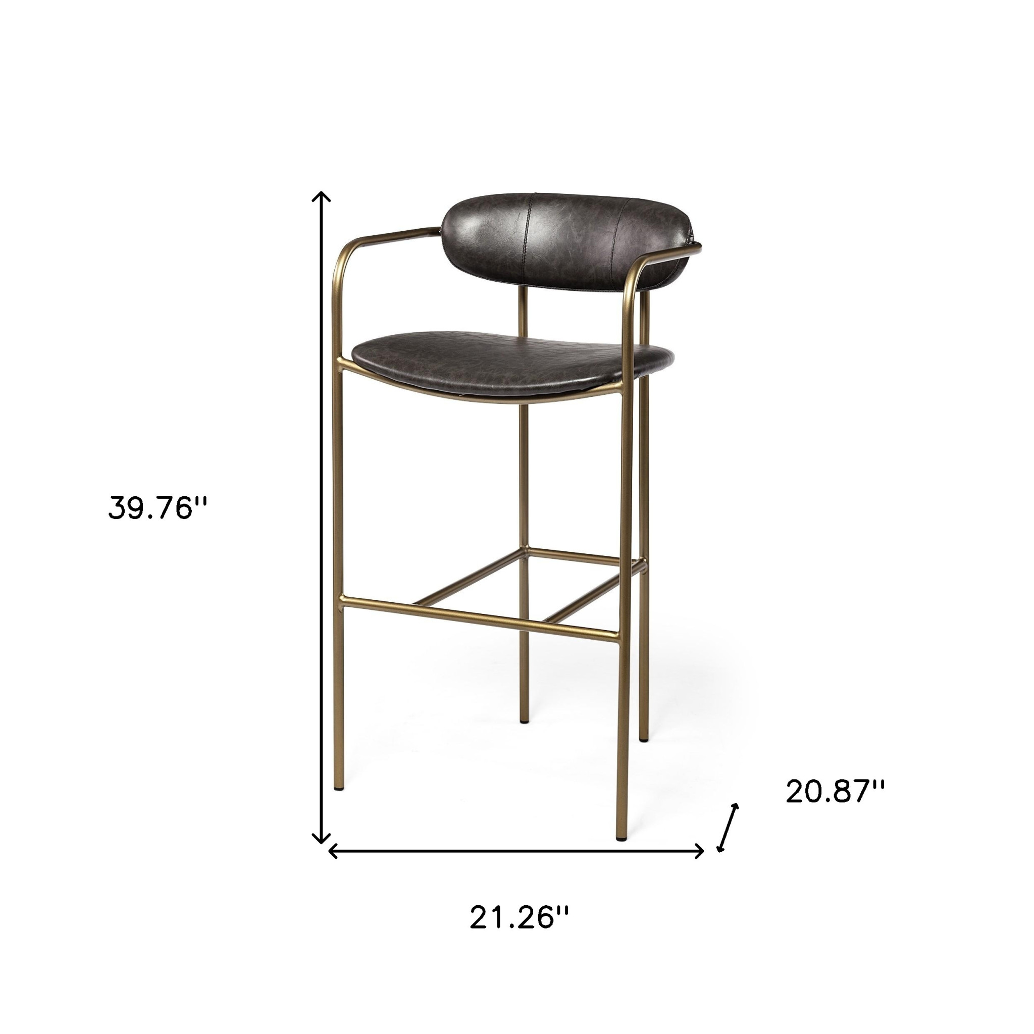 This 30-inch brown and gold faux leather and steel bar height bar chair with footrest will be the perfect way to add some cool design and utility to your space similar to what you find in your favorite cafes or pubs. Quality construction from gold steel combines with brown faux leather to give this stool a fresh and updated look. 39.76-inch H x 20.87-inch W x 21.26-inch D