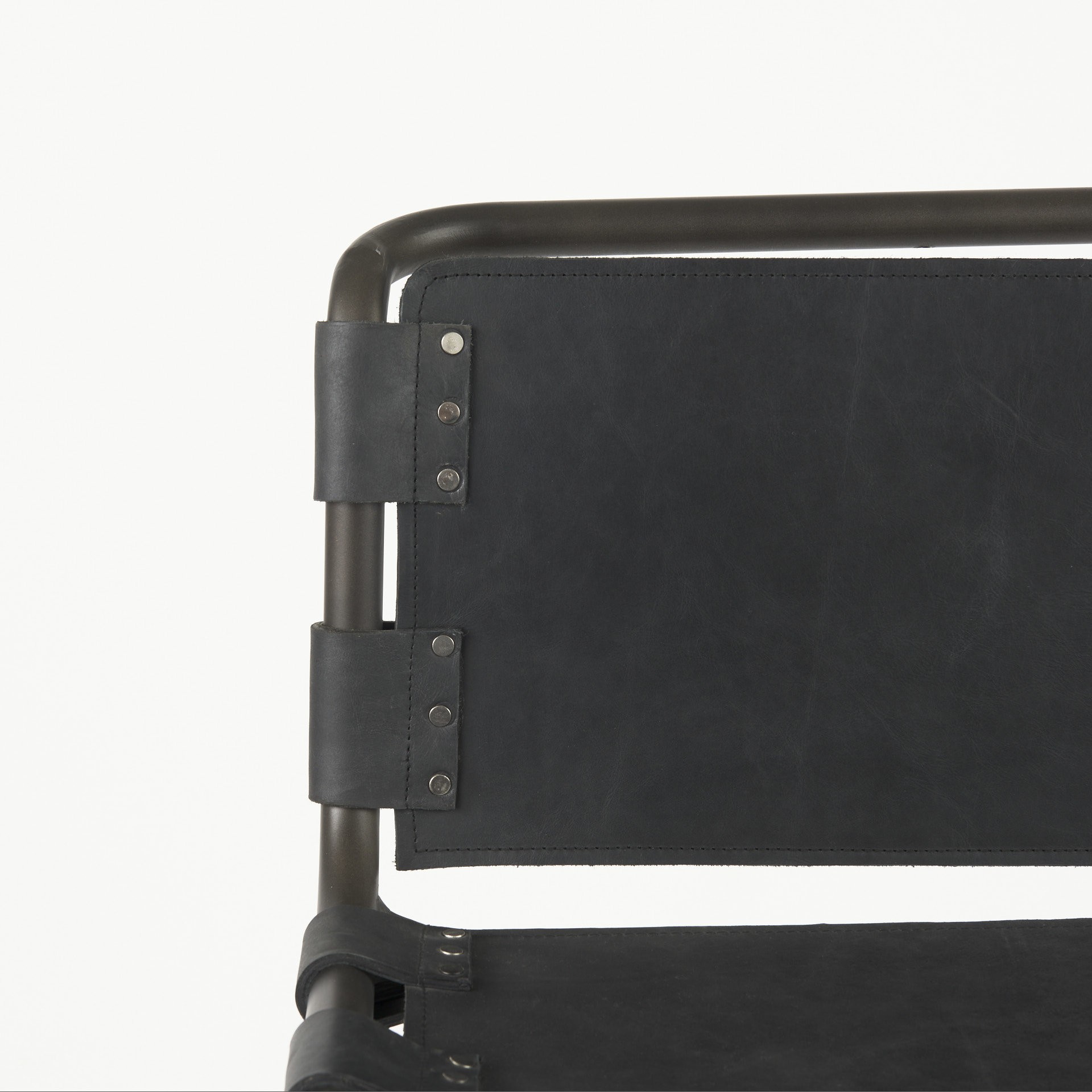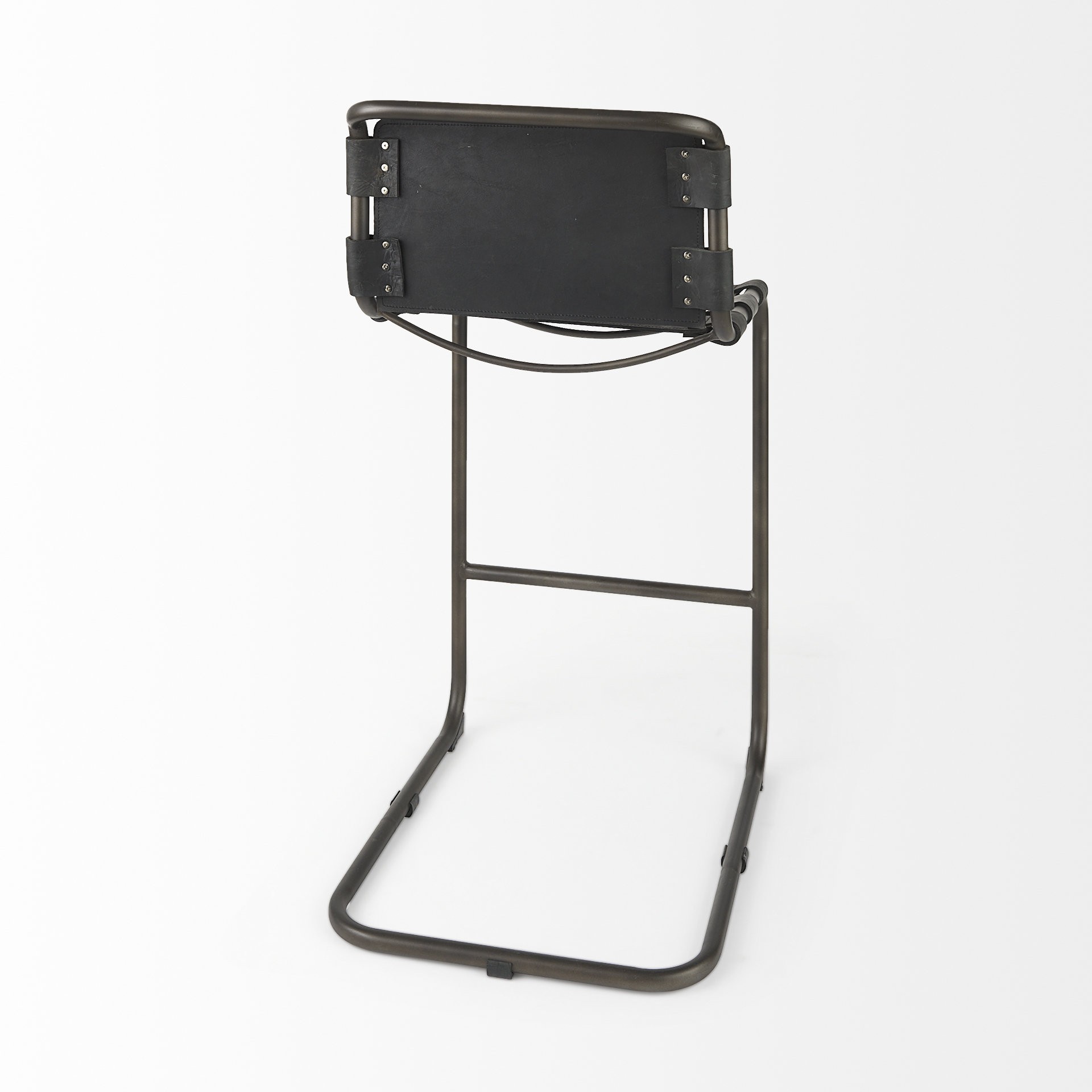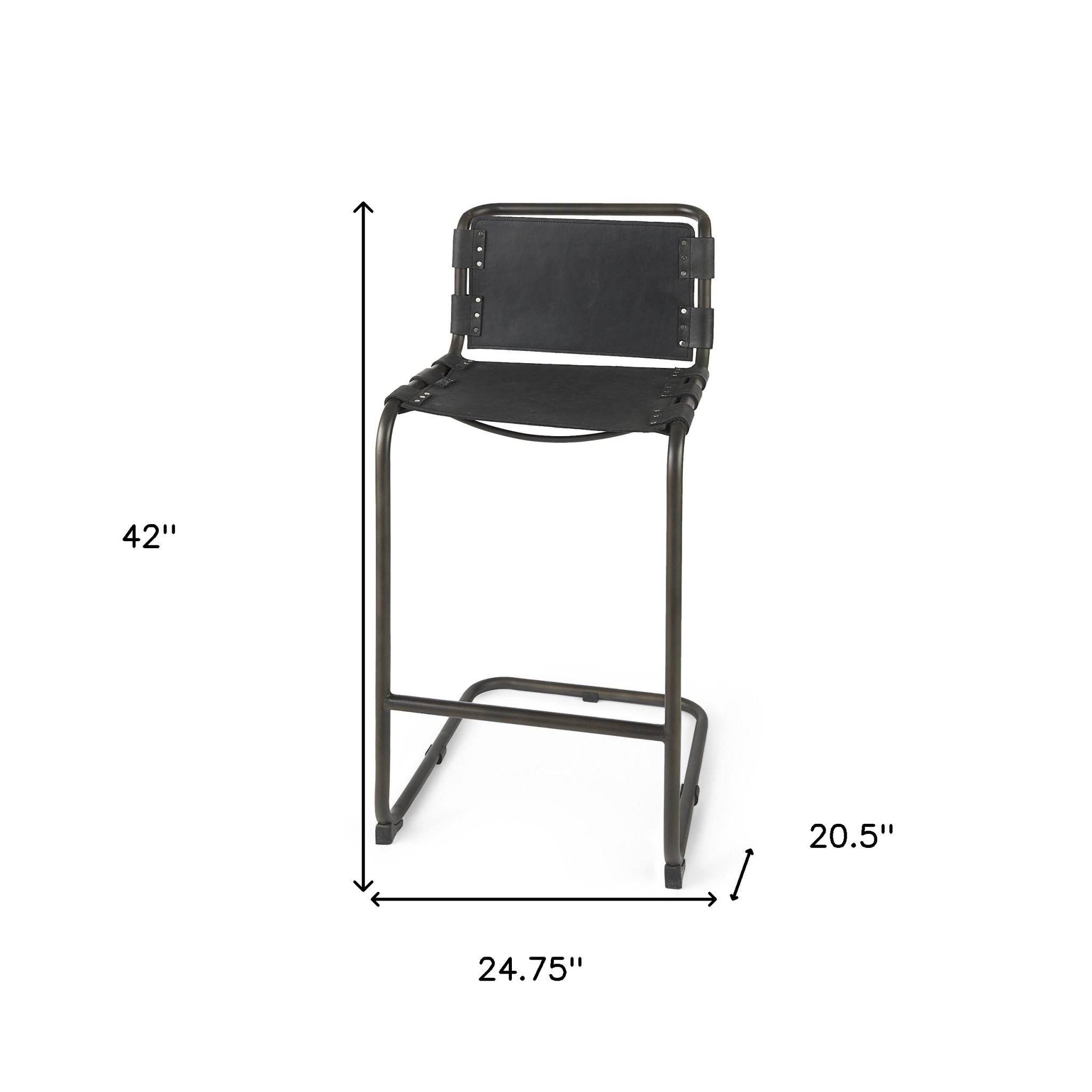The perfect way to add some extra seating in your home, this 30-inch black and gray leather and iron bar height bar chair will elevate the look and vibe of your room. A gray iron frame is finished off with a black leather seat that is the epitome of quality construction and design. Not only good looking and stylish, this chair features a rectangle shaped seat and a full_back for the ultimate in comfort and enjoyment. Designed with a footrest for comfort and convenience. 42-inch h x 24.75-inch w x 20.5-inch d.