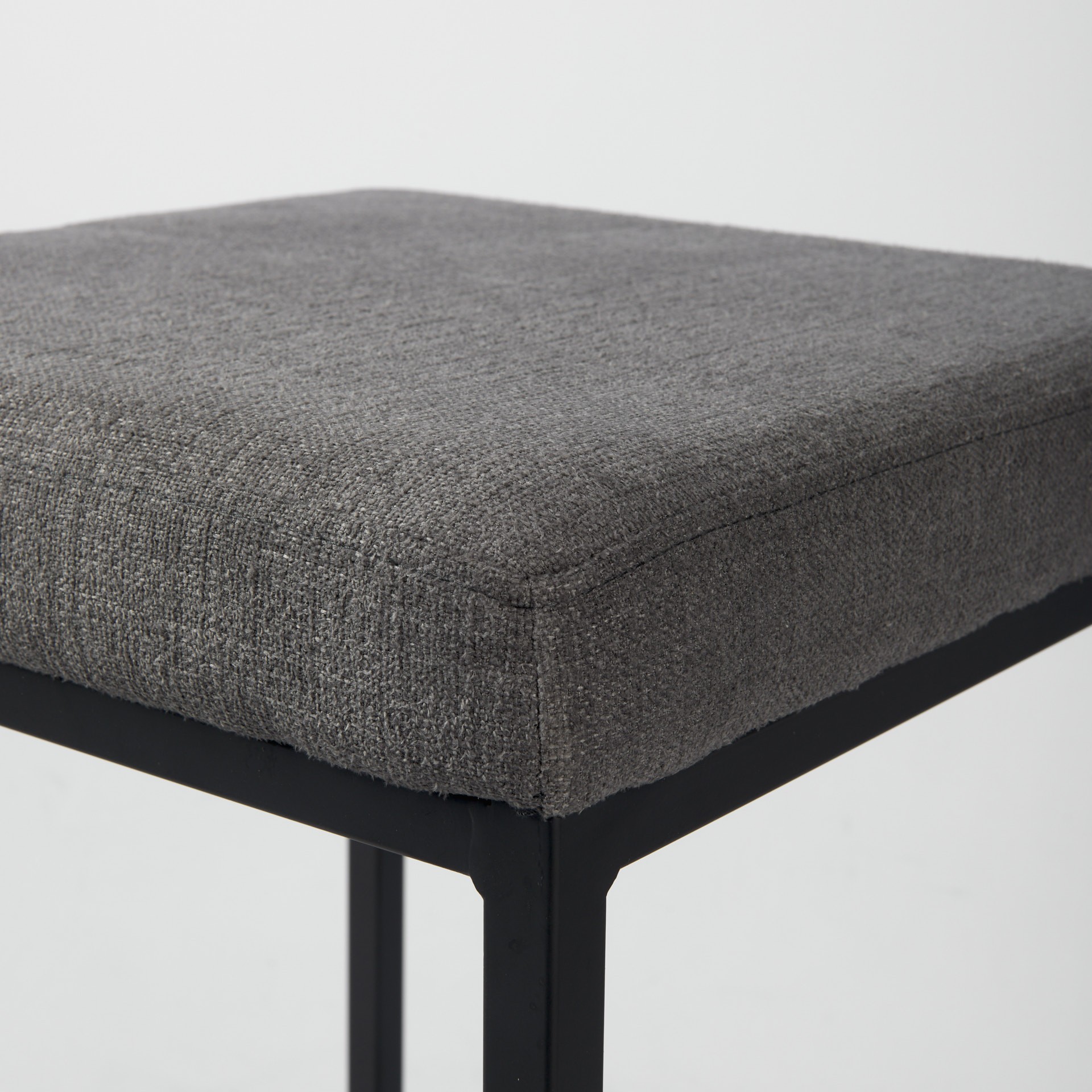 Bring a trendy bar vibe to your space with this stylish 26-inch gray fabric and black metal backless counter height bar chair. The seat's gray fabric beautifully complements the black high-quality metal base, enhancing the industrial style of this upholstered piece. A footrest is included for added comfort, and the seat height of 26.4 inches from floor to seat ensures a perfect fit for your bar counter. 26.38-inch h x 16.54-inch w x 16.54-inch d.