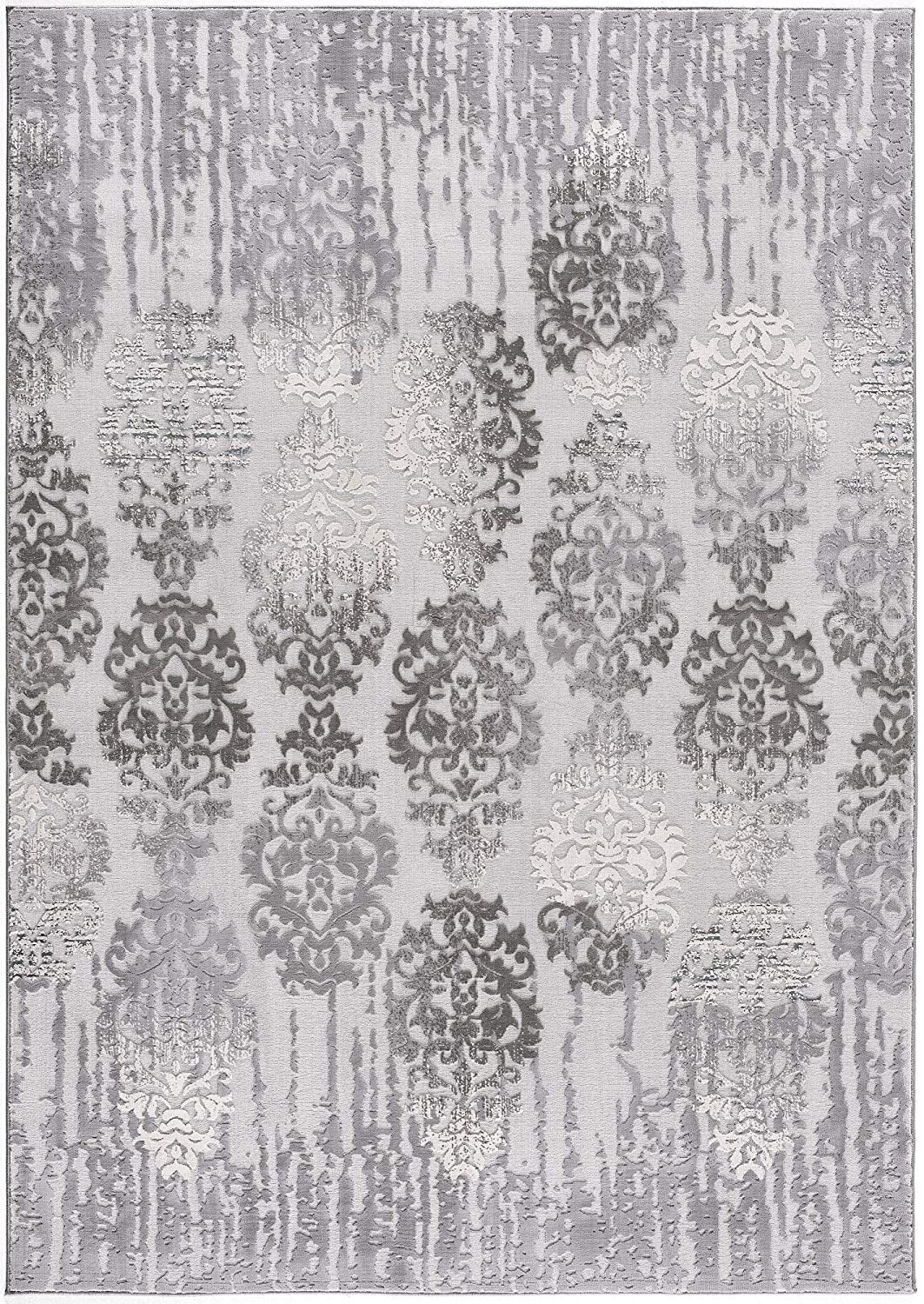 Set an inviting tone in your space with this 8' x 10' gray damask power loom area rug. This rectangle shaped rug features a damask design in gray to give it visual interest. A classic shape marries with good looking design for your space Made in Turkey, this rug offers high quality combined with good looking designer sensibilities. Area Rugs help to give warmth and sense of home to your space. 0.8" H x 92" W x 128" D