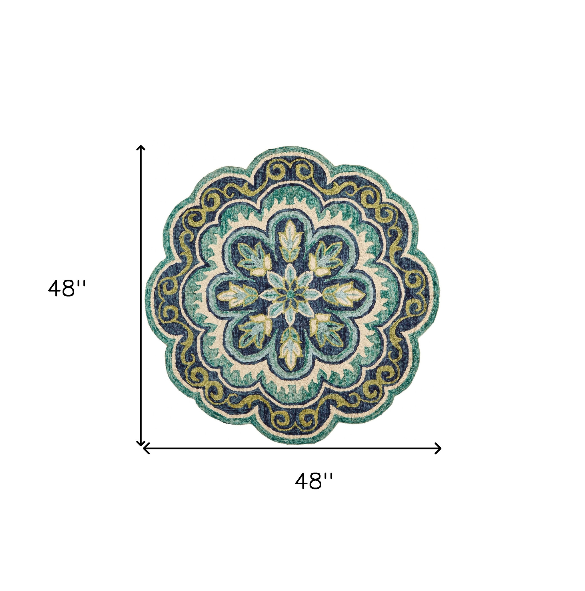 The nature-inspired look of this Round Green Floral Artwork Area Rug represents a relaxing color palette in an artful way to grace any modern living space. With variegated shades of bold and soft greens creating an intriguing medallion with layers of floral artwork adds to the visual interest. To stand up to high traffic areas, this rug is hand-tufted with 100% virgin wool which is known for its insulating property, softness, and resilience to keep its shape and shine for years. Layer the floor with this piece to experience a plush underfoot due to the low pile, which adds to the surface texture for a cozy and comfortable feel. Create a calm and cozy ambiance in your place with this beautiful area rug rolled on the floor. 48”