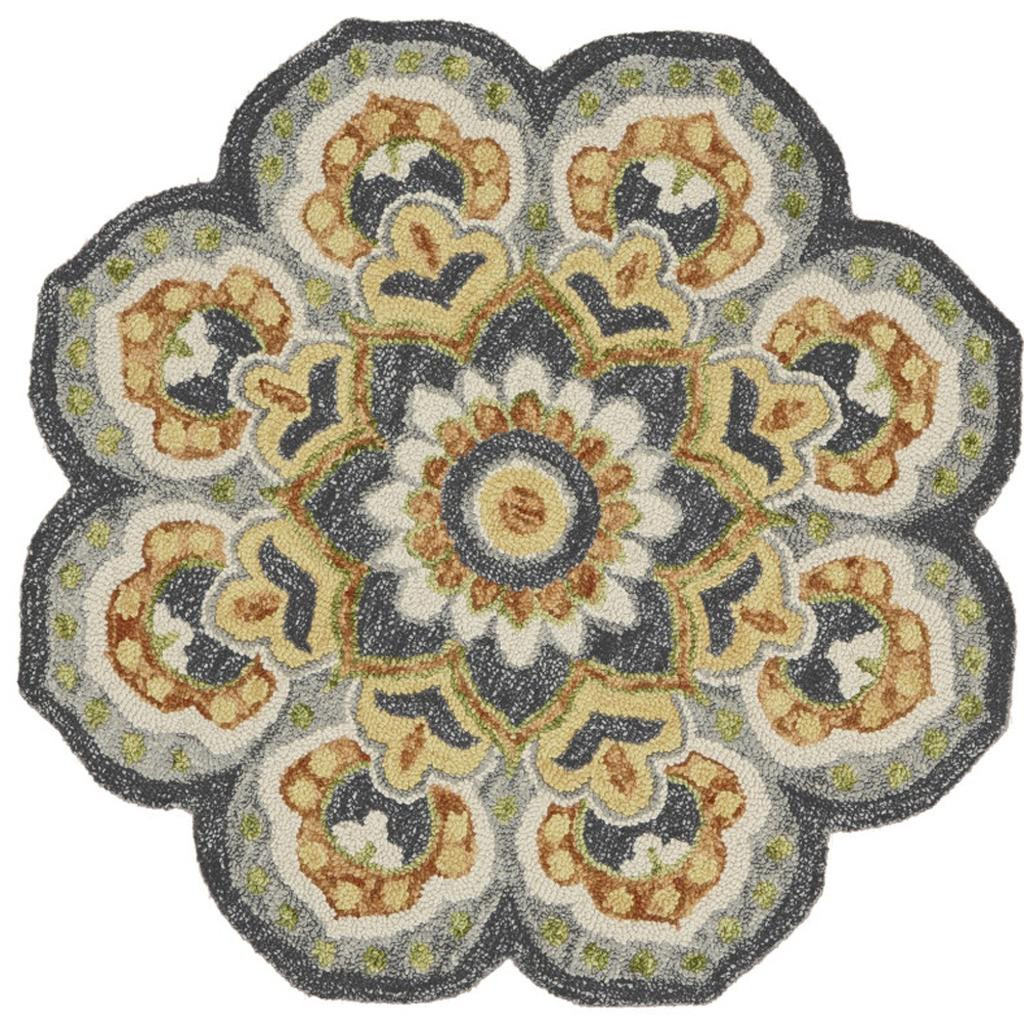 Add great coloration and comfortable texture to your space with this 4-foot gray wool geometric hand tufted round rug. Crafted by skilled artisans, this hand tufted rug is genuine and unique. No two will be exactly alike. Rugs are a great way to showcase your style, hide imperfections, warm your home and reduce noise. This smaller sized, traditional styled rug is just what you need for your walkway, bedside, in front of door, cabinet, refrigerator, or chair. 48-inch h x 48-inch w x 0.5-inch d.