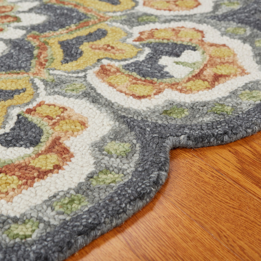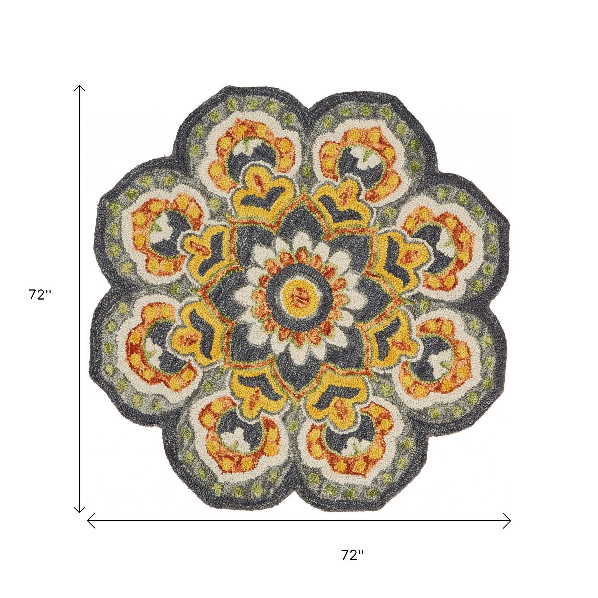 This 6-foot gray wool geometric hand tufted round rug, is a great way to add warmth to a room. Crafted by skilled artisans, this hand tufted rug is genuine and unique. No two will be exactly alike. Rugs are a great way to showcase your style, hide imperfections, warm your home and reduce noise. This larger sized, modern styled rug is ready to create a focal point or statement piece in your room. 72-inch h x 72-inch w x 0.5-inch d.